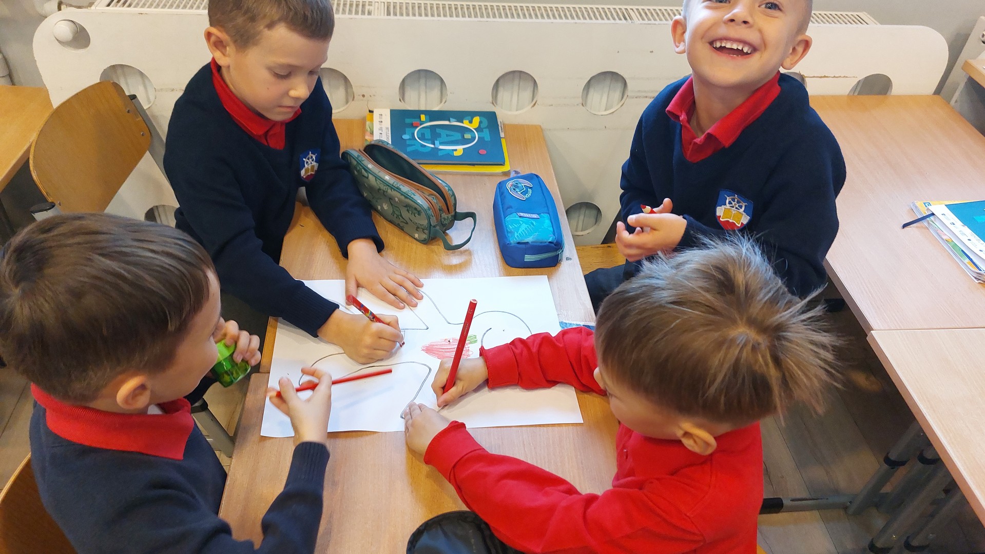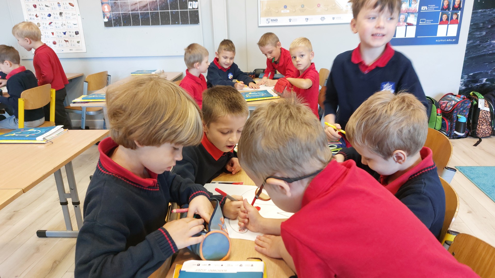 Głównym tematem zajęć w klasie startowej, zgodnie z naturą jest jesień. Skupiliśmy się na jej darach - warzywach i owocach. Chłopcy posłuchali piosenki, którą wielu z nich znało, „Olimpiada w Jarzynowie”: https://www.youtube.com/watch?v=H0d-zG2Z2-g