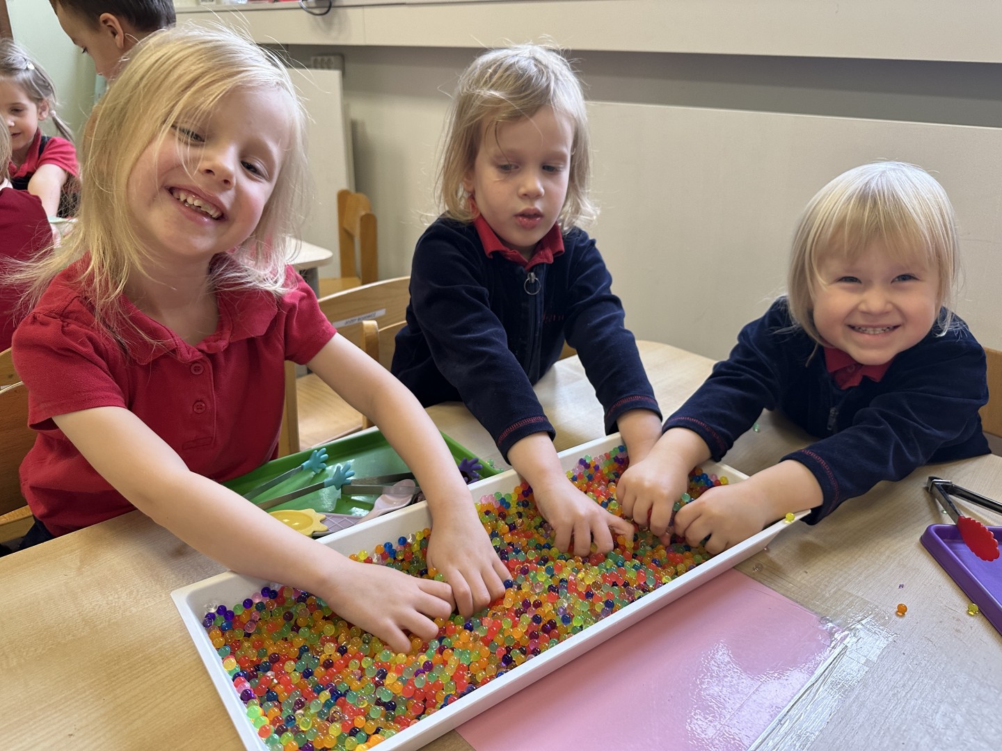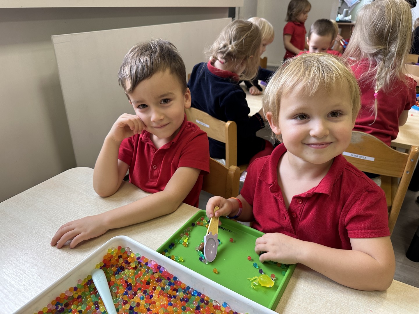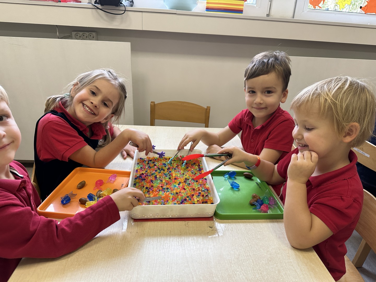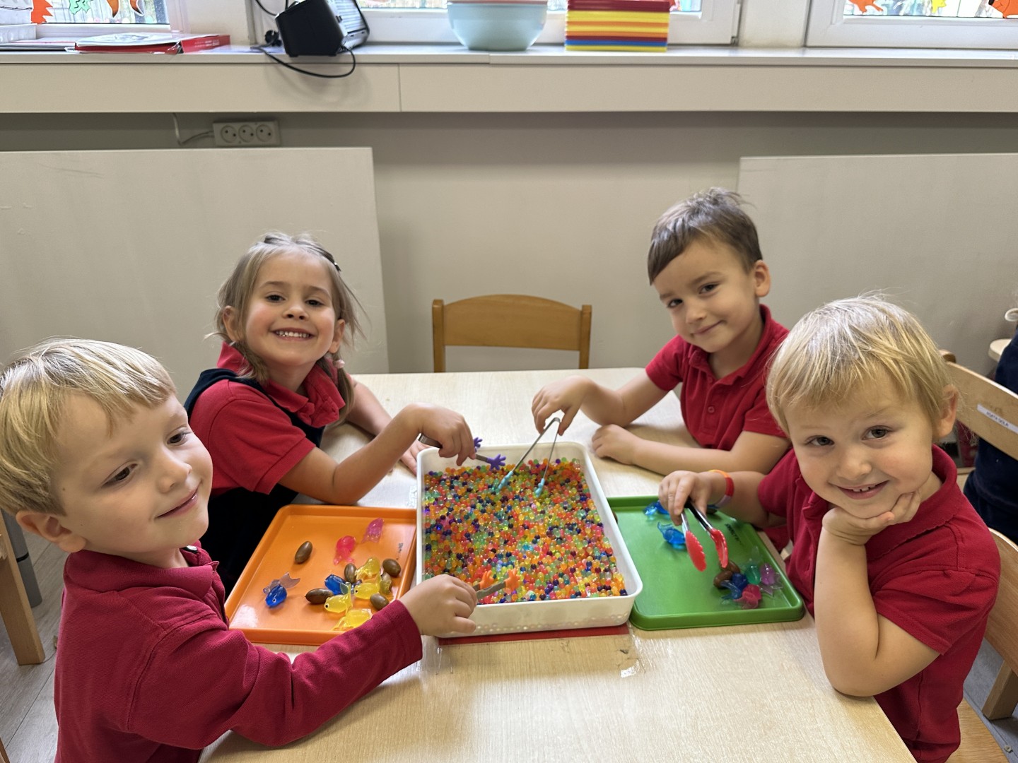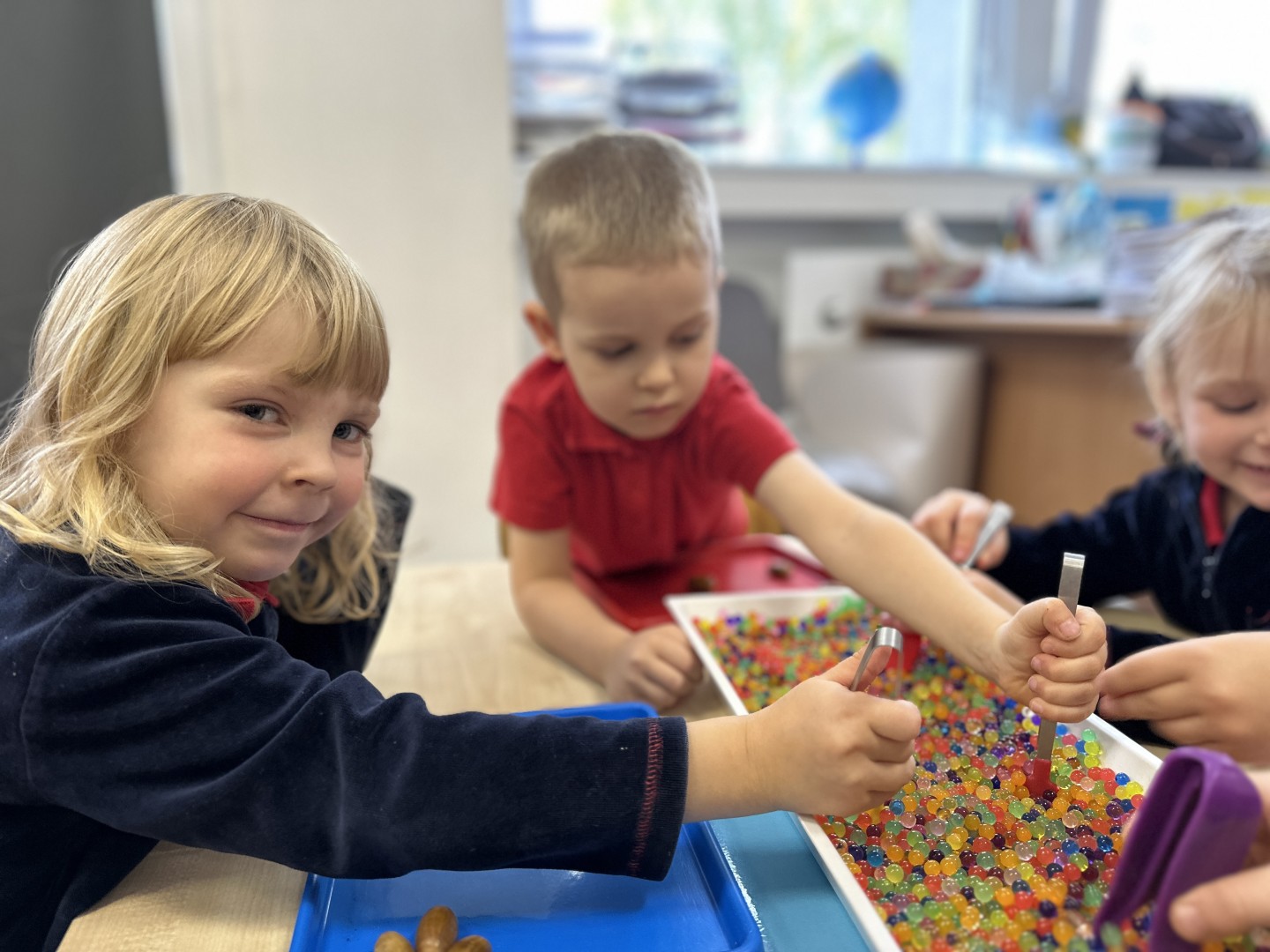 Za pomocą szczypców i łyżek łowiły dary natury - żołędzie i kasztany, rozwijając przy tym motorykę małą, koordynację wzrokowo-ruchową oraz cierpliwość. Zabawa dostarczyła mnóstwo radości i satysfakcji.