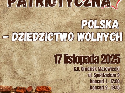 Przypominamy, że już 17.11.2025 jedno z najważniejszych wydarzeń w kalendarium naszych placówek- Wieczornica Patriotyczna. Miejsce : Centrum Kultury Grodzisk Mazowiecki , Spółdzielcza 9