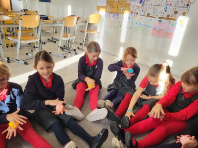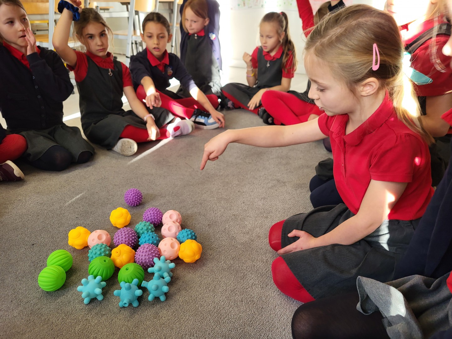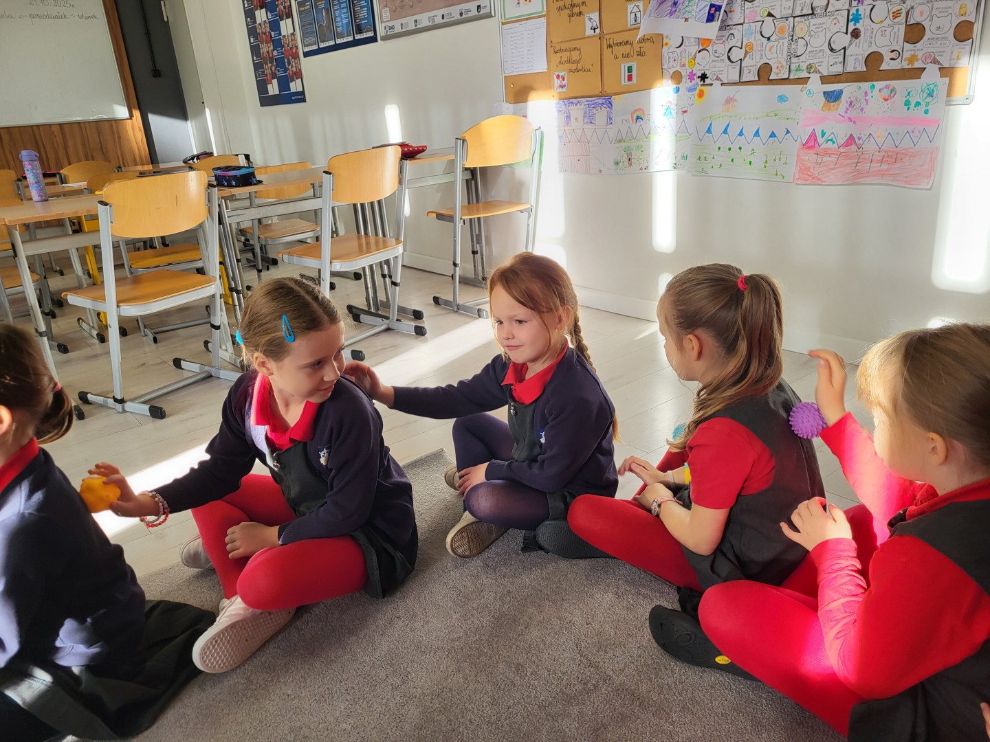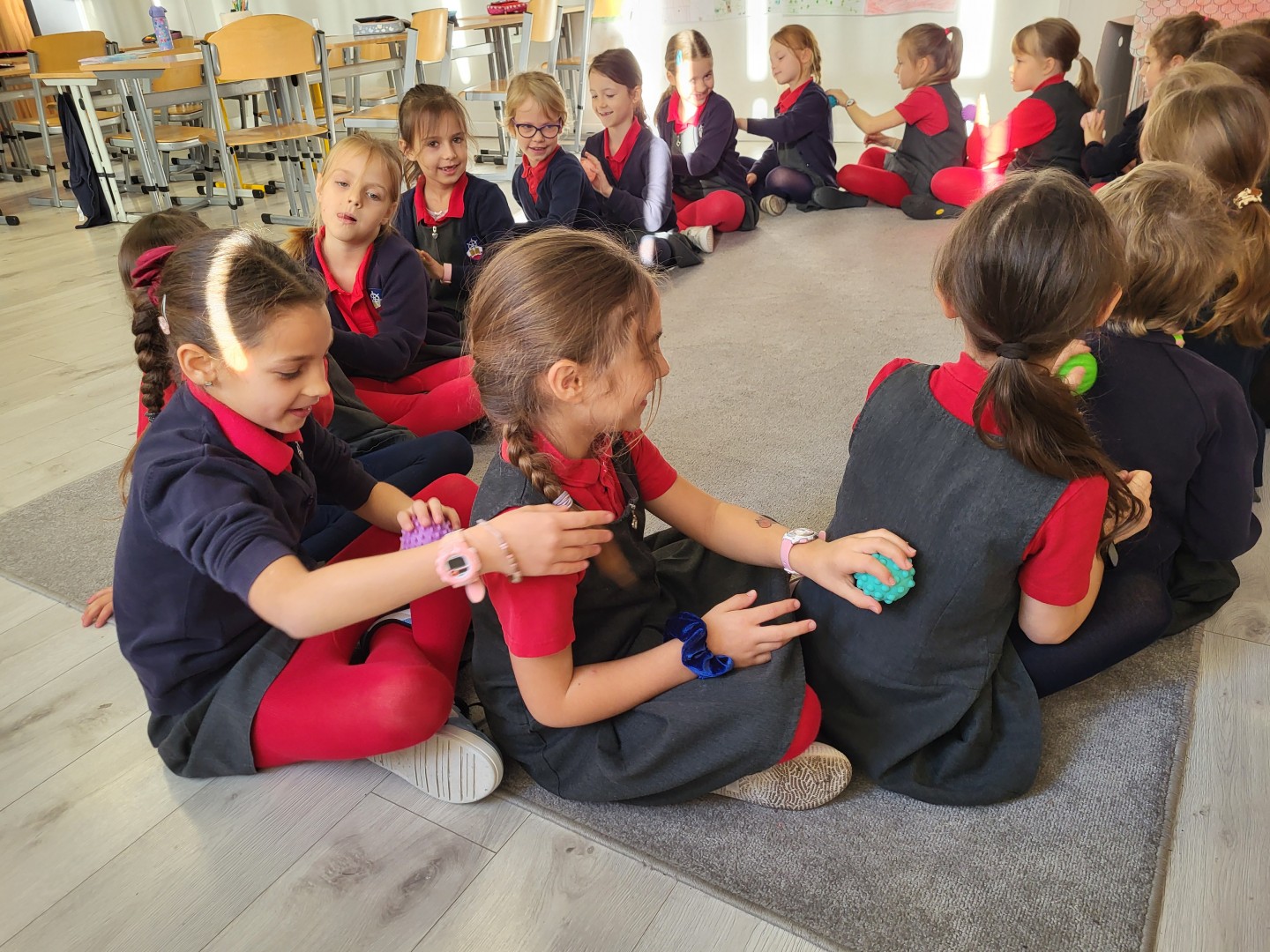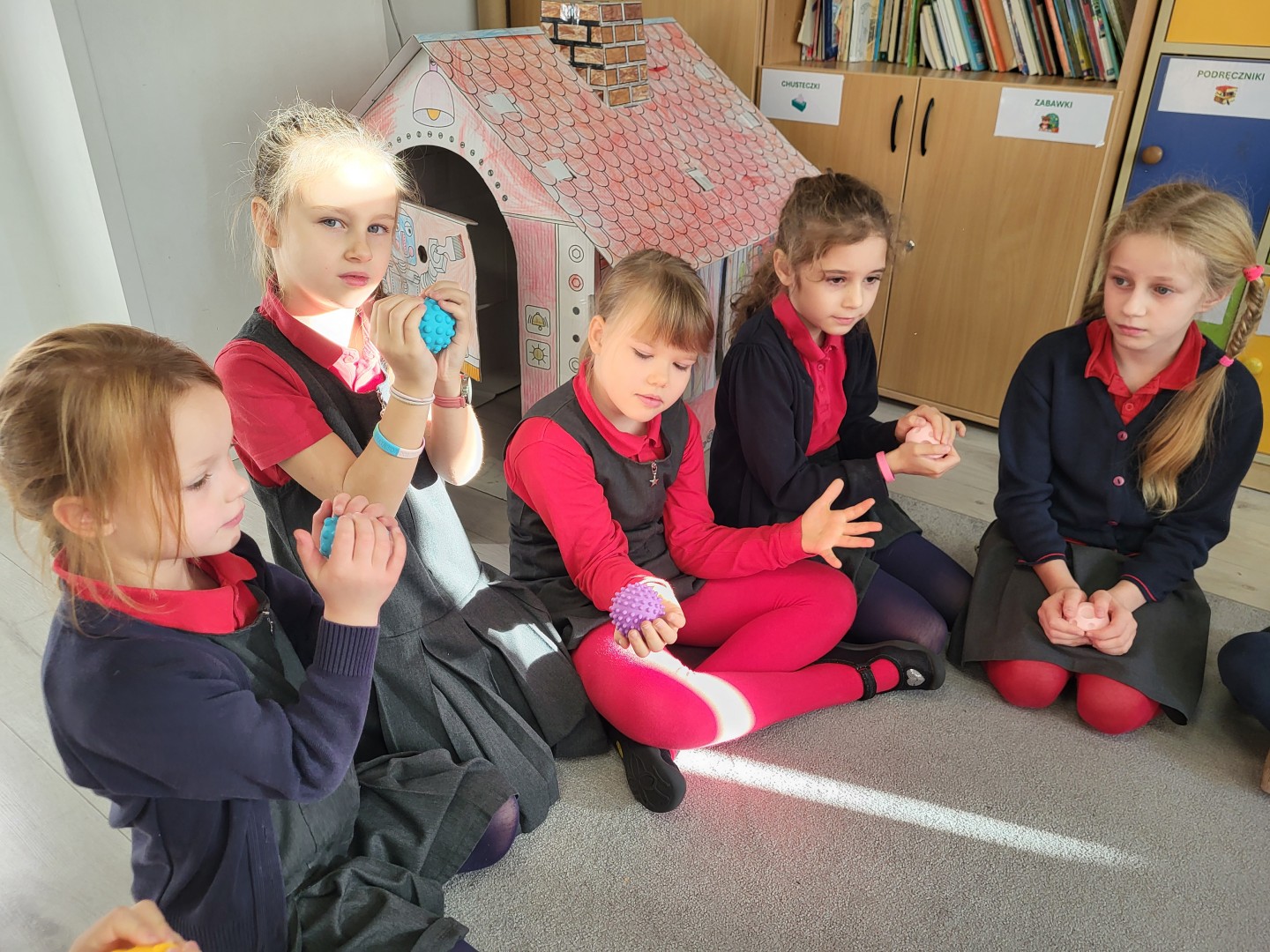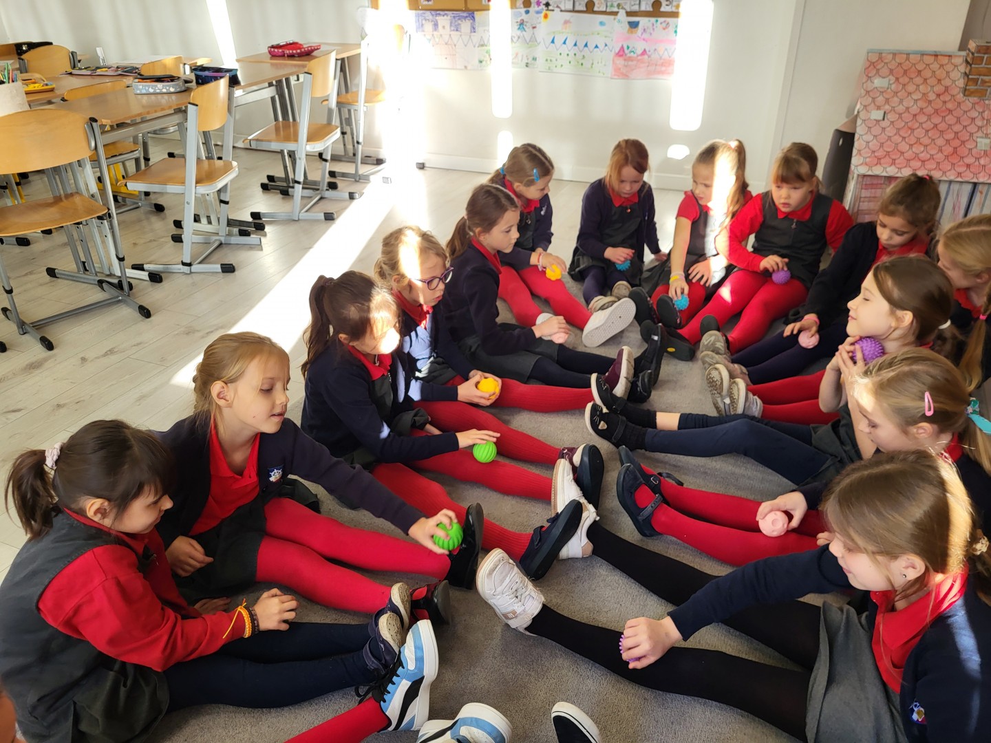 Rodzice dziewczynek z klasy 1P kupili zestaw kolorowych piłeczek sensorycznych, które będą nam służyć do końca pierwszego etapu edukacyjnego.