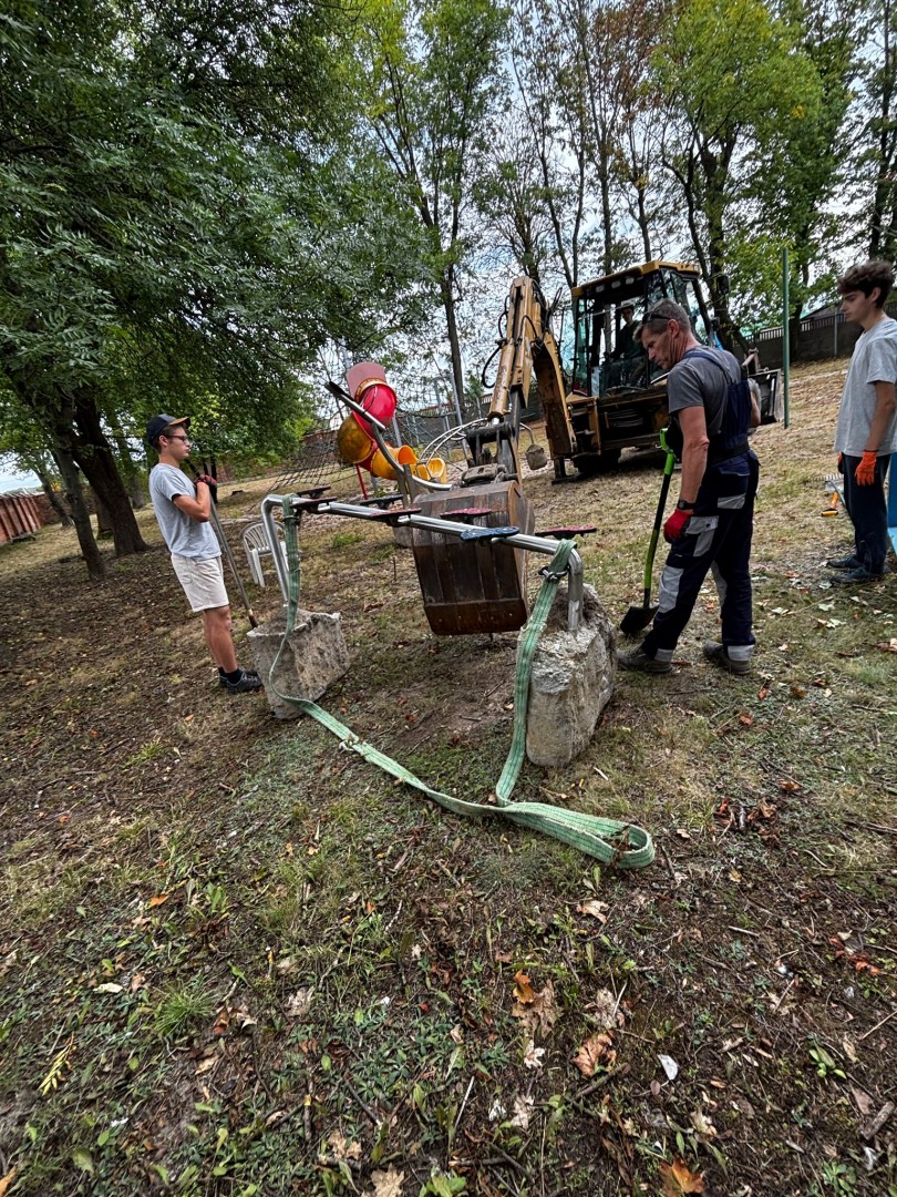 - Pan Krzysztof Śledziewski wraz z synami (uczniami z naszego ALO) wkopał wszystkie elementy przy pomocy swojej koparki,