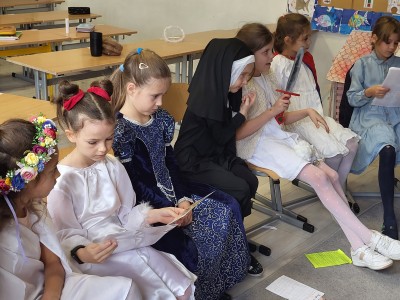 Uczennice zadbały o przygotowanie stroju wybranej świętej, który z dumą nosiły przez cały dzień. Ponadto zaprezentowały krótką historię życia swojej postaci, wybierając najciekawsze fragmenty. Niektóre z nich były trudne, smutne, ale pełne wiary w Boga, ufności w bożą wolę i miłości względem bliźniego. Pod koniec dnia dziewczynki słuchały piosenek o świętych.
