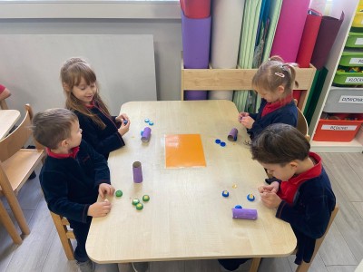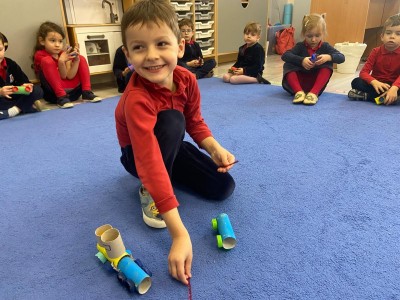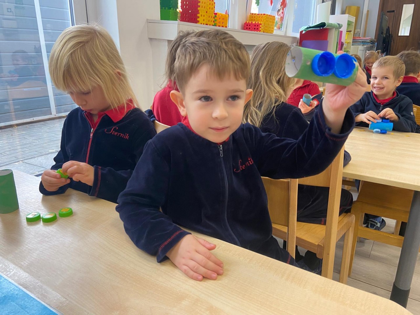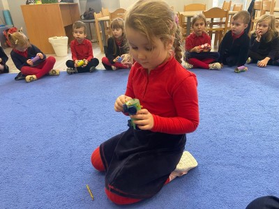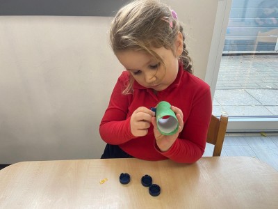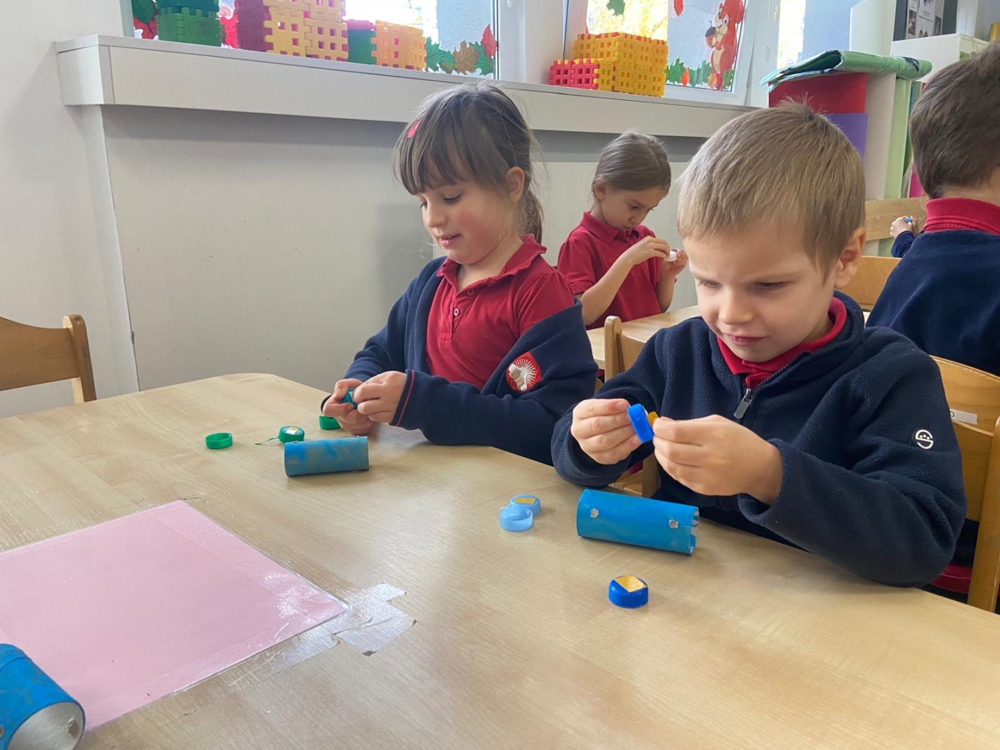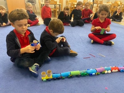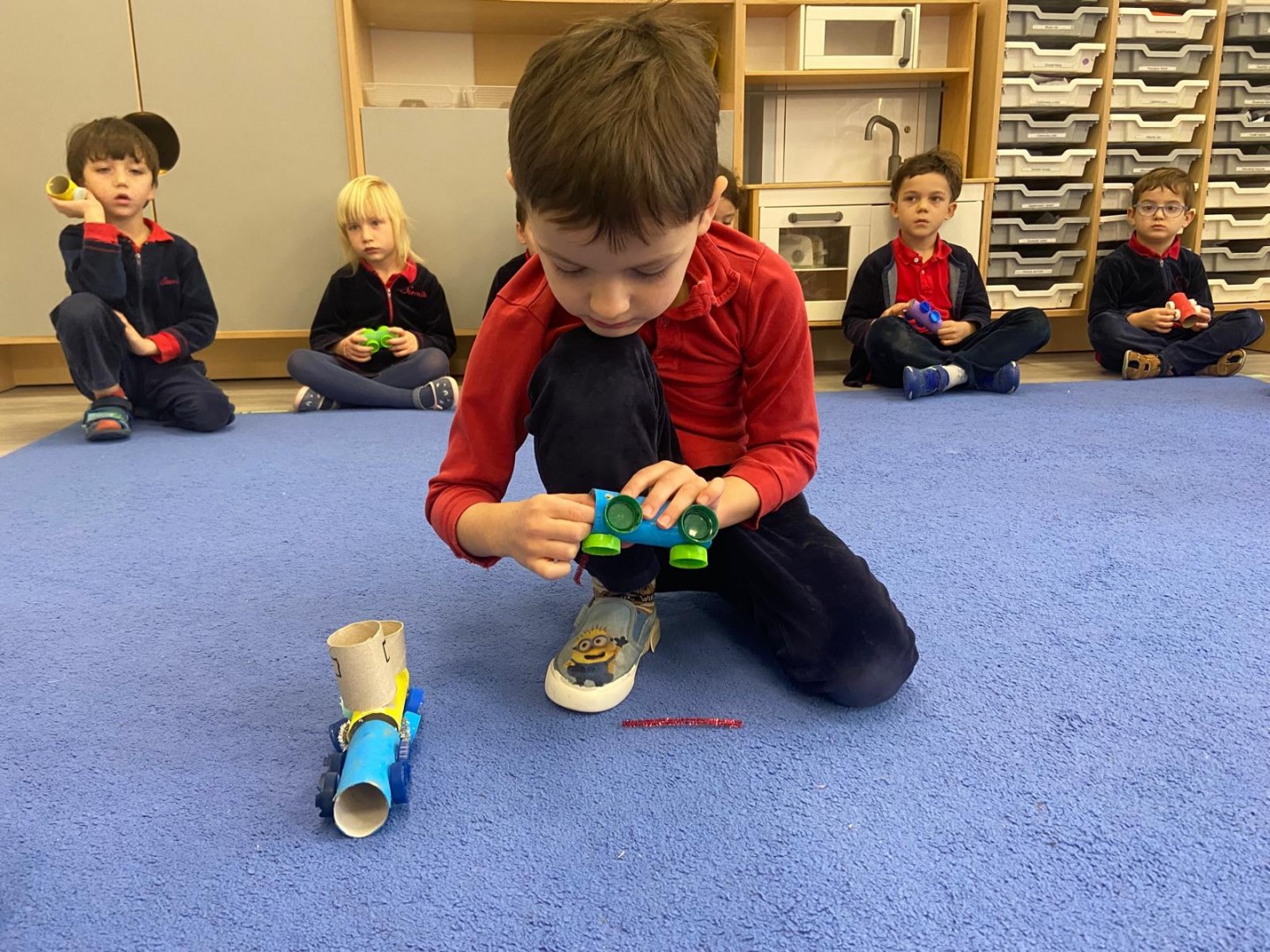Na zakończenie zajęć wspólnie wykonaliśmy pociąg z rolek po papierze i nakrętek – to była świetna zabawa i doskonały przykład na to, że z pozornie niepotrzebnych rzeczy można stworzyć coś ciekawego!