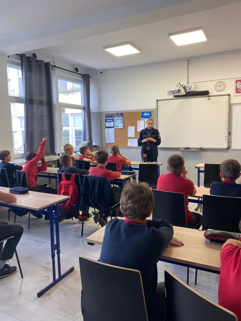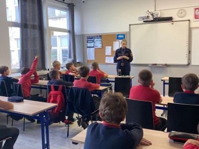 Podczas ostatniej godziny wychowawczej uczniowie klasy 5a mieli okazję spotkać się z przedstawicielką Straży Miejskiej, która opowiedziała im o tym, jak mądrze i bezpiecznie korzystać z Internetu.