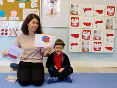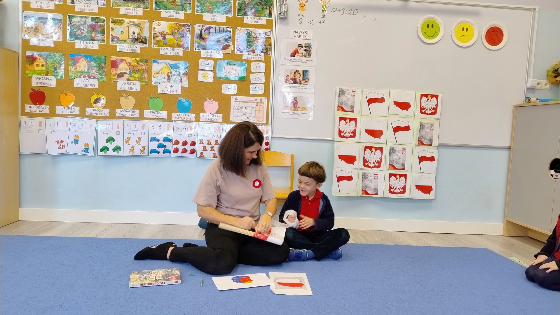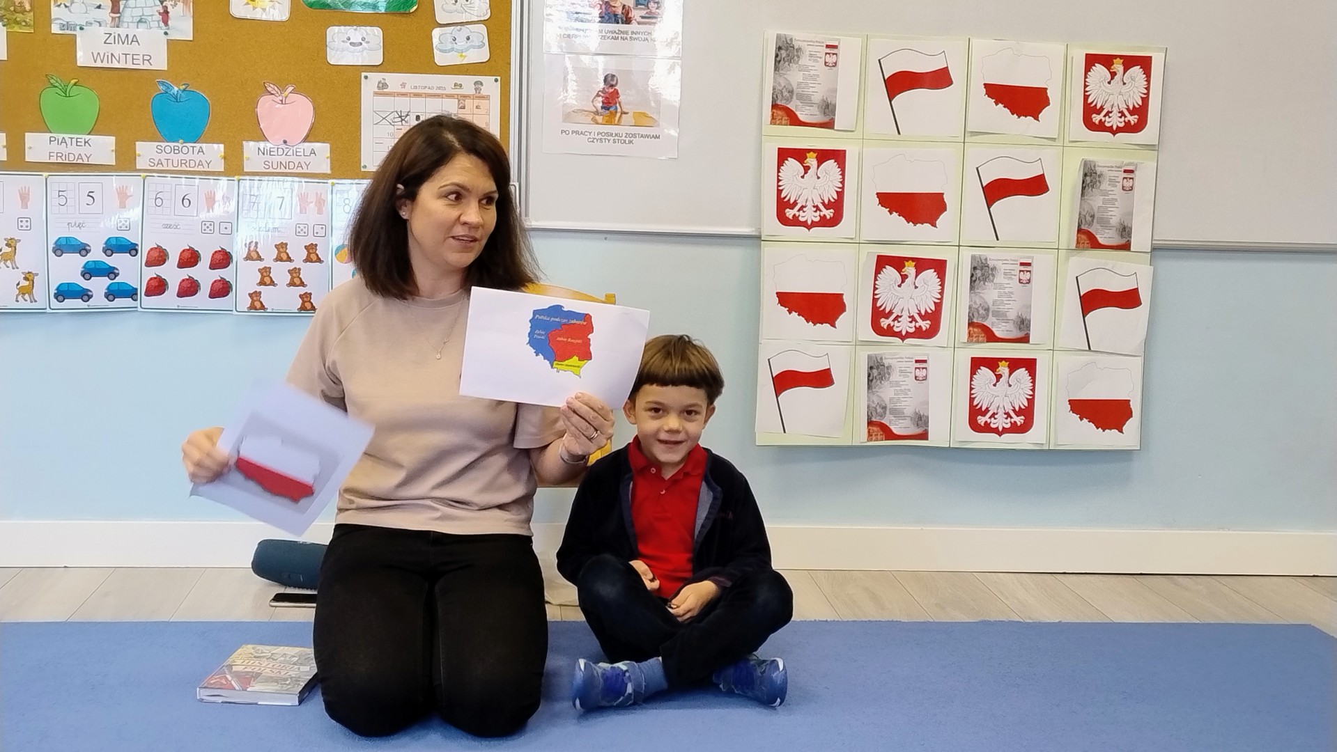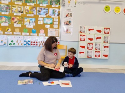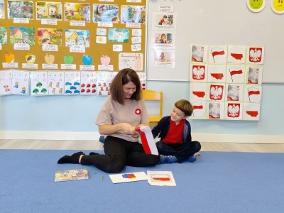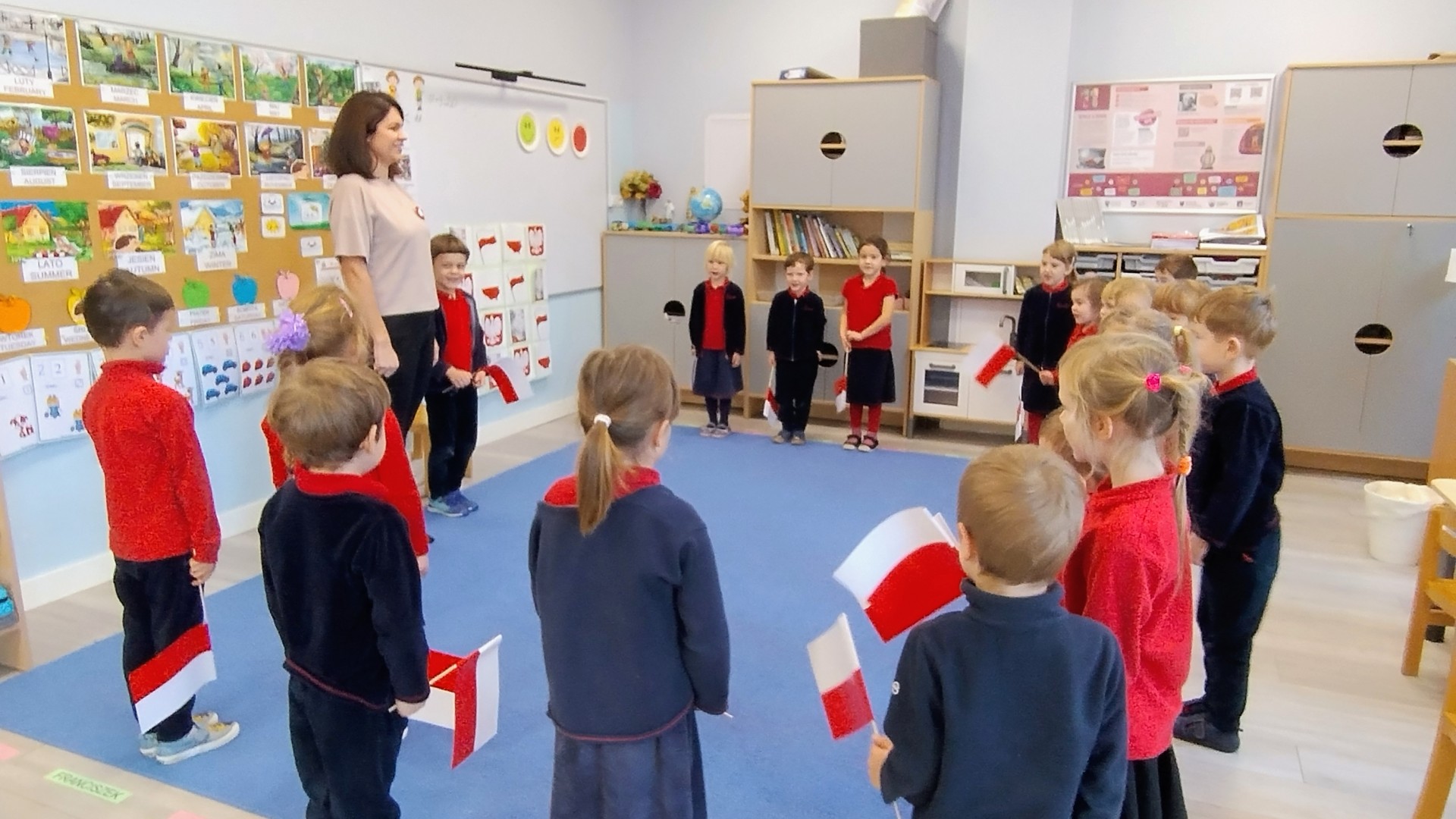 Podczas spotkania dzieci rozwiązywały zagadki, wspólnie odśpiewały hymn narodowy, a na zakończenie każdy przedszkolak otrzymał flagę, z którą będzie mógł wziąć udział w obchodach Święta Niepodległości.