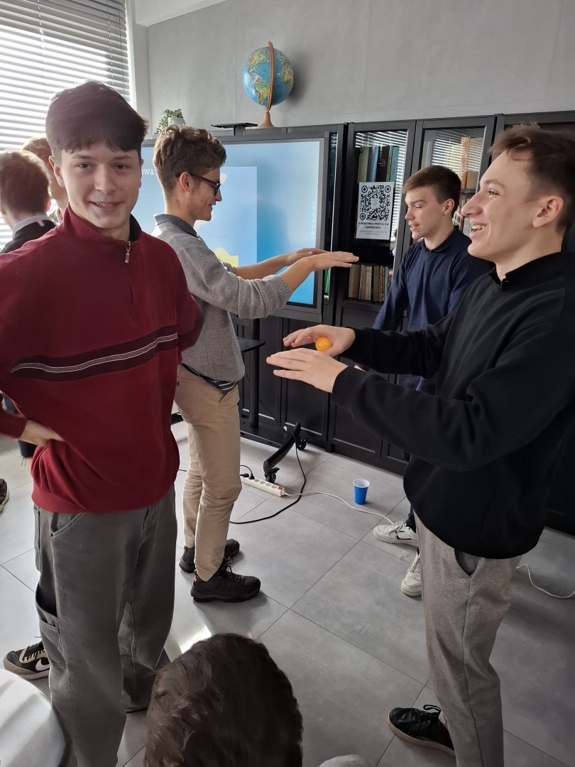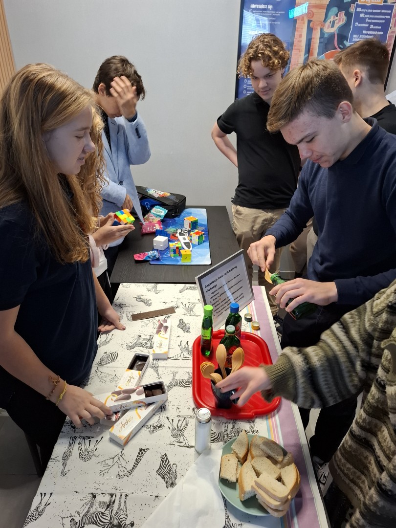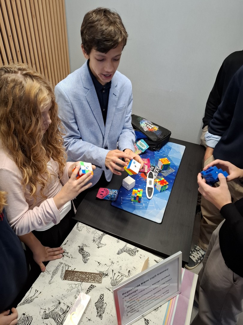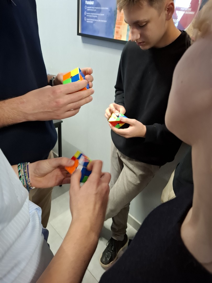 Pierwszego dnia uczniowie mieli okazję wysłuchać wystąpienia p. Adama Datty z Instytutu Biologii Doświadczalnej im. M. Nenckiego PAN na temat "W PUŁAPCE DUALIZMU: MITYCZNY PODZIAŁ NA ROZUM I EMOCJE Z PERSPEKTYWY NEUROBIOLOGII". Jedna z ważniejszych myśli jaka podała pod koniec wystąpienia, to fakt, że zawsze jest moment podjęcia decyzji, nawet gdy jesteśmy w intensywnych emocjach. Była to również okazja dla odważnych na degustację tranu w czasie przerw oraz podjęcie wyzwania układania kostki Rubika.