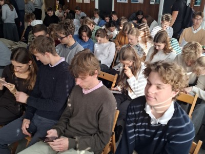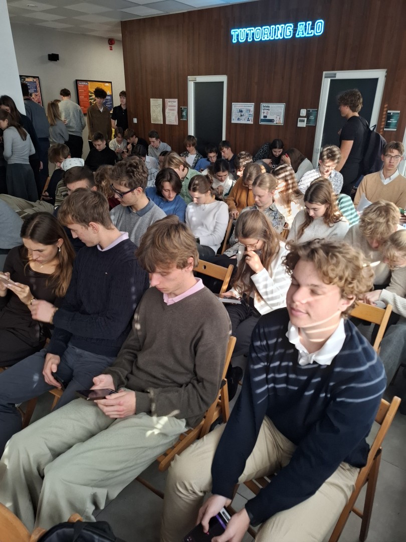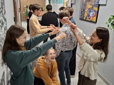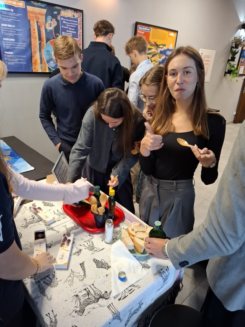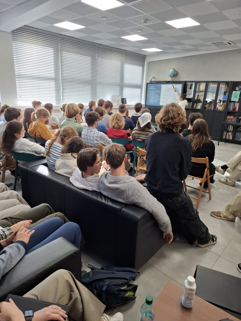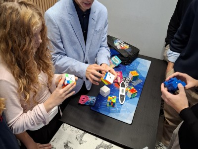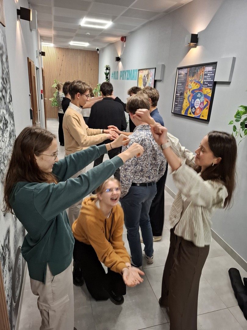 Pierwszego dnia uczniowie mieli okazję wysłuchać wystąpienia p. Adama Datty z Instytutu Biologii Doświadczalnej im. M. Nenckiego PAN na temat "W PUŁAPCE DUALIZMU: MITYCZNY PODZIAŁ NA ROZUM I EMOCJE Z PERSPEKTYWY NEUROBIOLOGII". Jedna z ważniejszych myśli jaka podała pod koniec wystąpienia, to fakt, że zawsze jest moment podjęcia decyzji, nawet gdy jesteśmy w intensywnych emocjach. Była to również okazja dla odważnych na degustację tranu w czasie przerw oraz podjęcie wyzwania układania kostki Rubika.