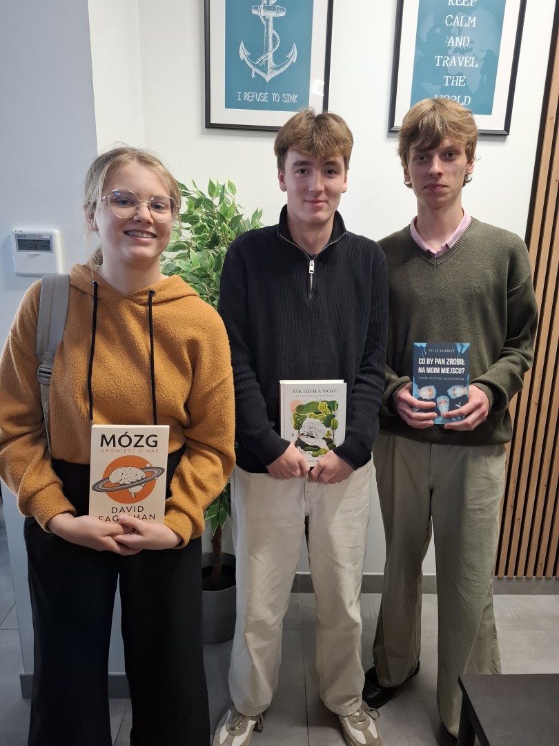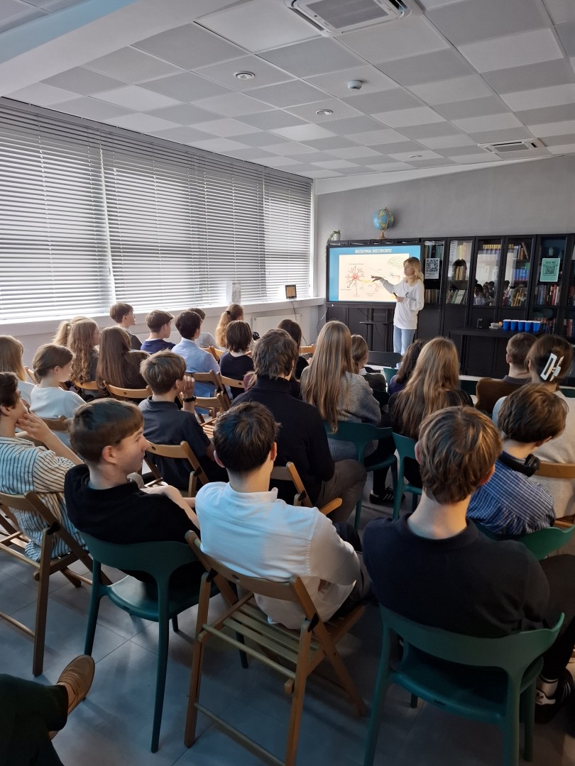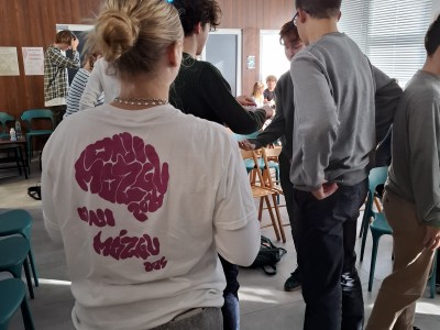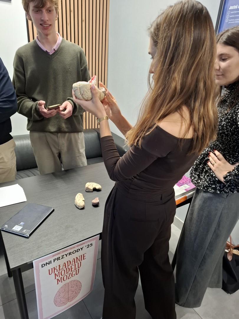 Drugi dzień przyniósł spotkanie z Kołem Naukowym Neuropsyche ze Szkoły Wyższej Psychologii Społecznej pod tytułem "NEURON, SYNAPSY I HORMONY - JAK DZIAŁA NASZ MÓZG". Między innymi mogliśmy się przekonać jak działa kofeina na nasz mózg i jak dbać o tzw. dobrą dopaminę. Uczniowie mogli także zmierzyć się z układaniem modelu mózgu na przerwach i sprawdzić swoją wiedzę w quizie o mózgu, w którym do wygrania były książki tematyczne. Dodatkowo, podczas lekcji omawiane były takie zagadnienia jak "Chemia mózgu" i "Jak dźwięk wpływa na mózg"