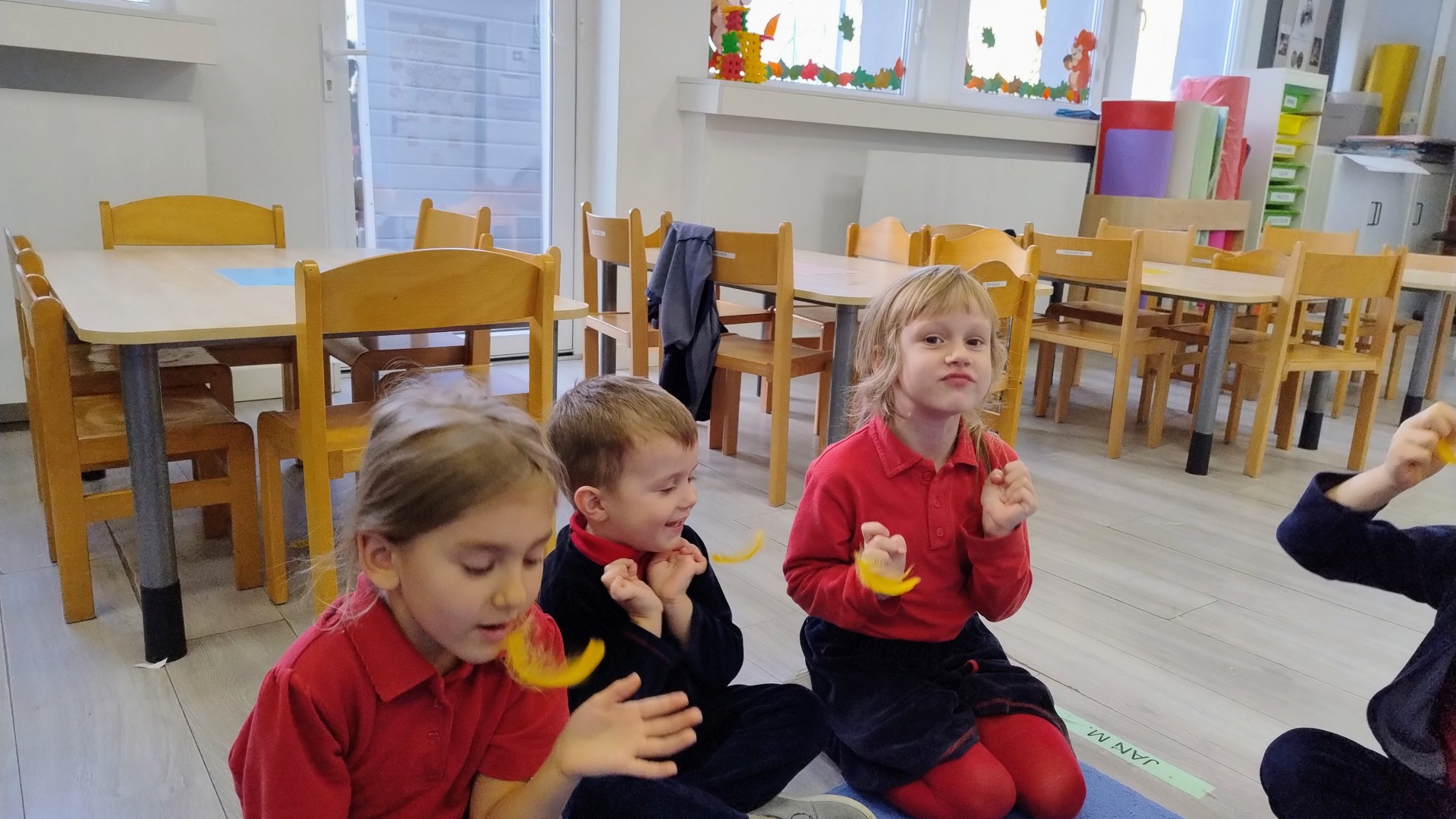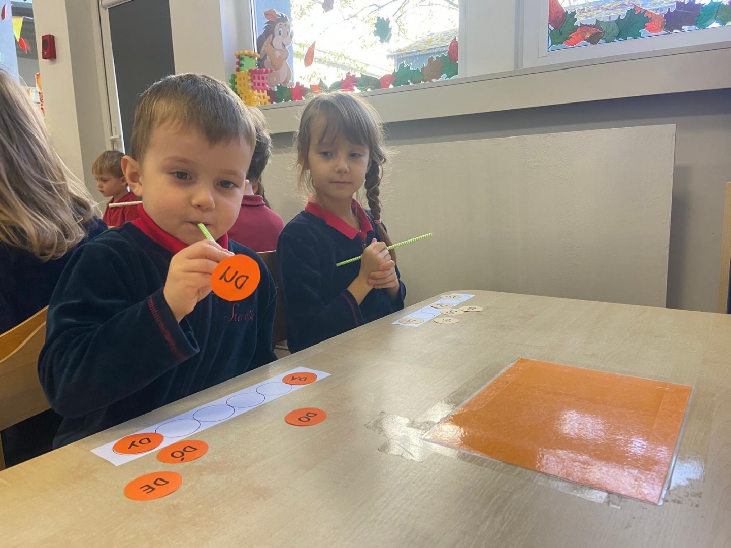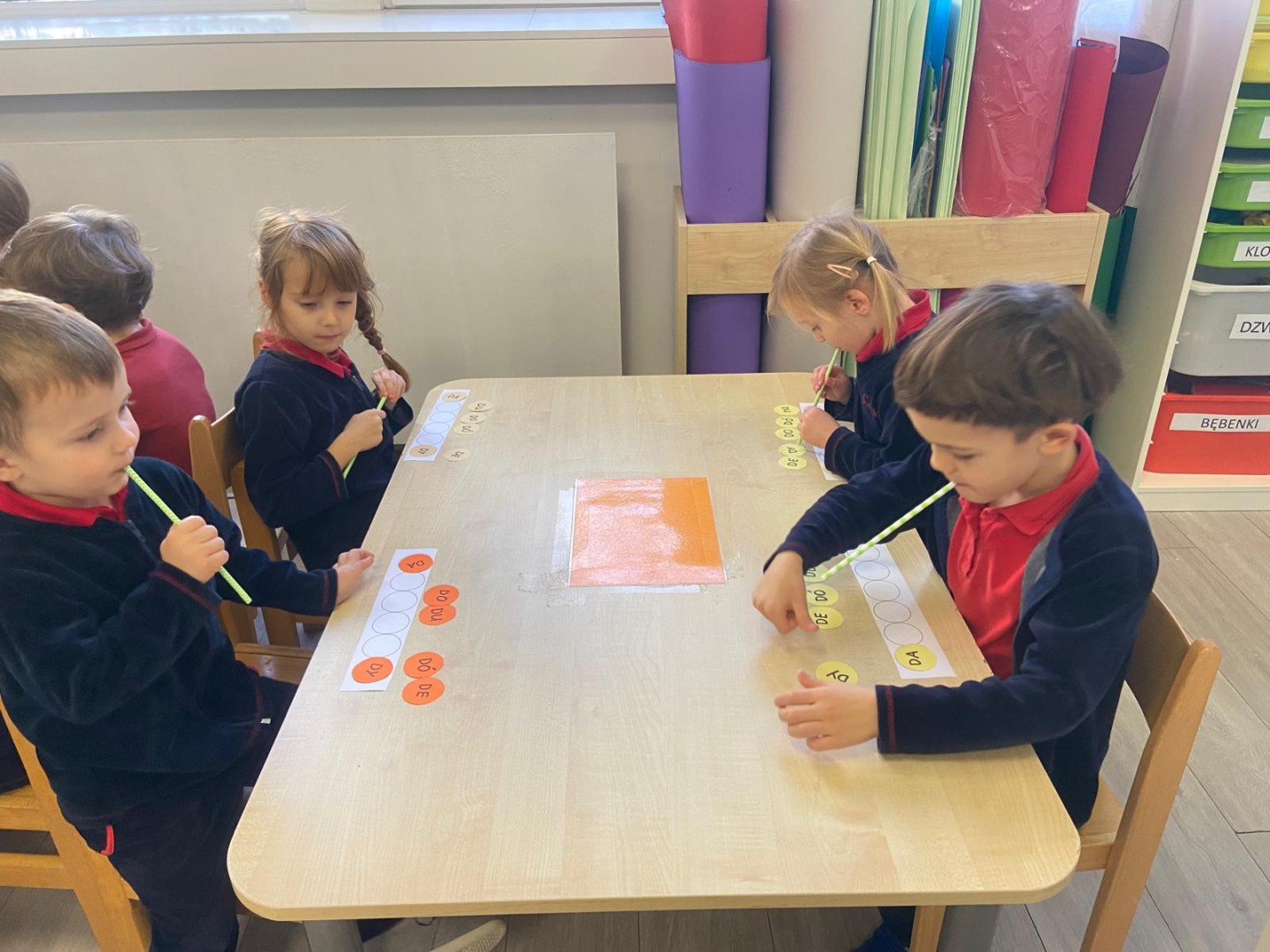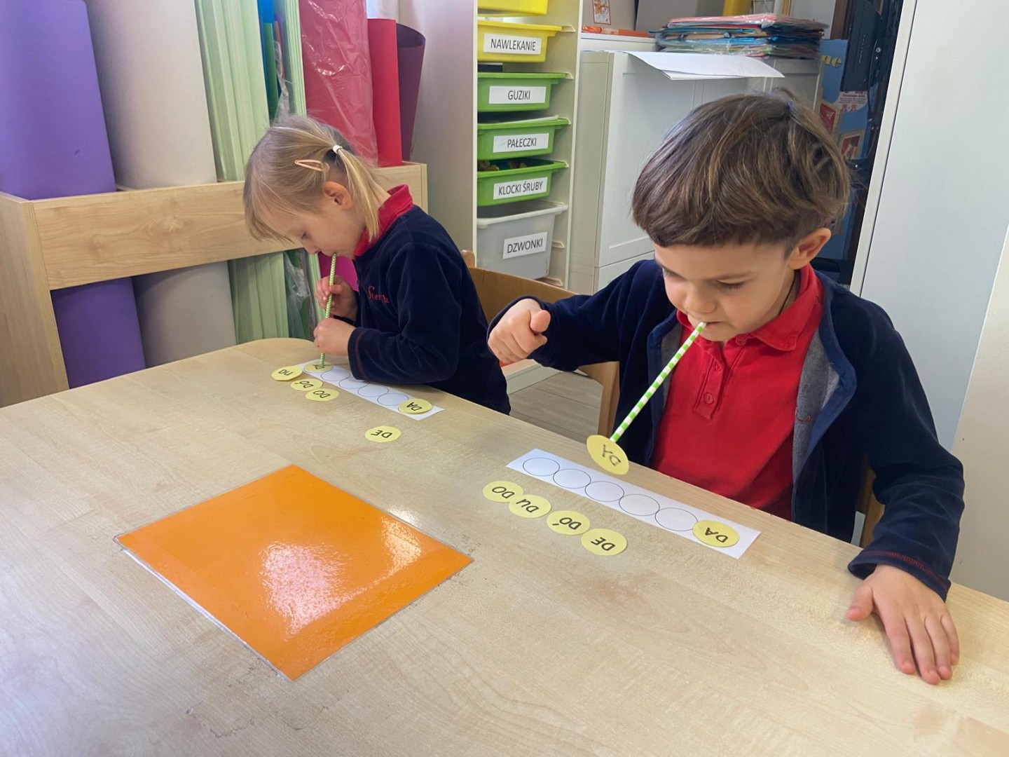 Podczas zajęć przedszkolaki utrwalały również poznane sylaby oraz ćwiczyły rozróżnianie prawej i lewej strony.