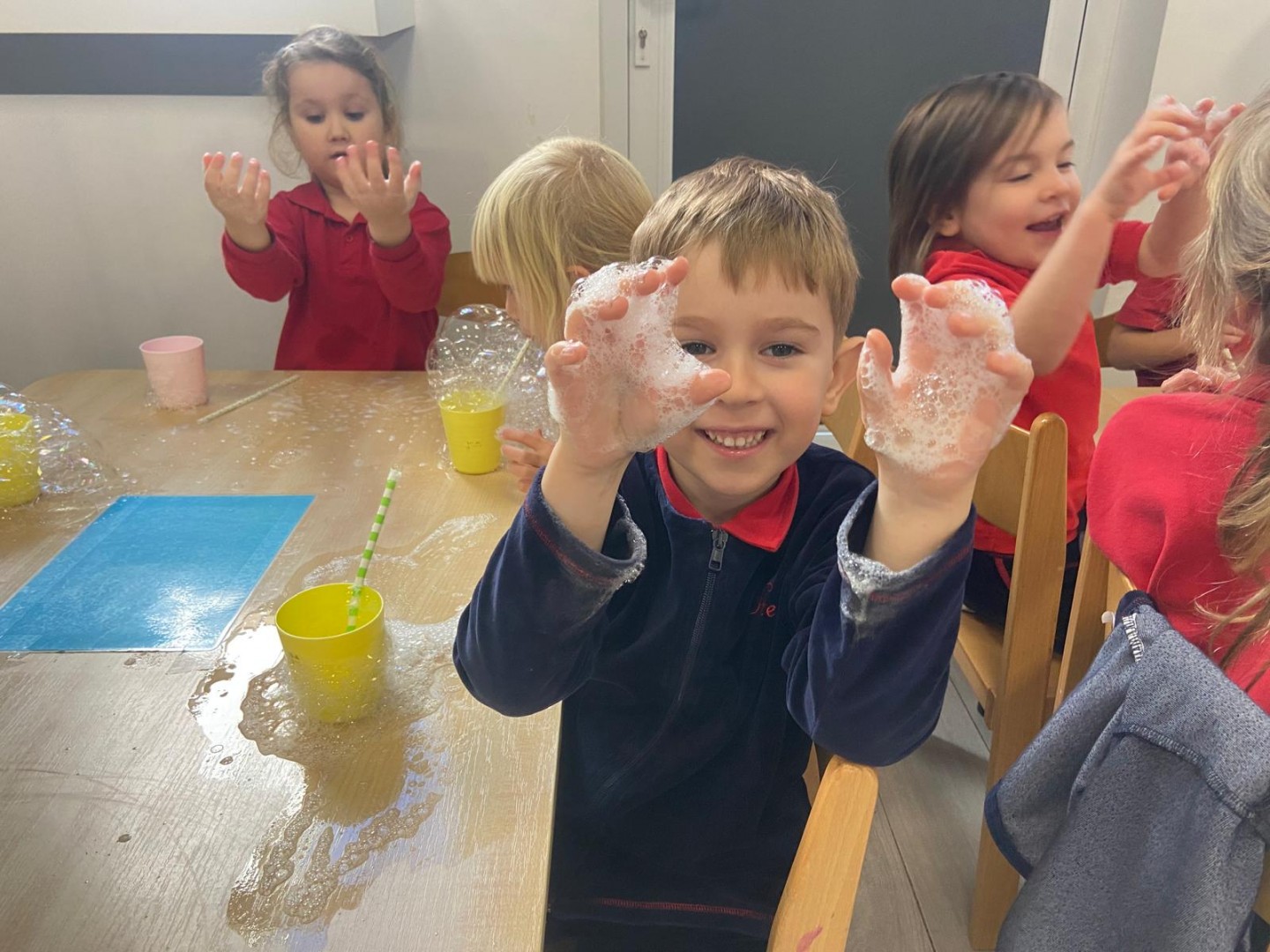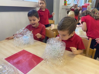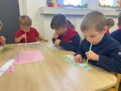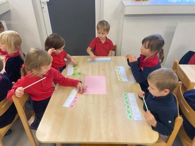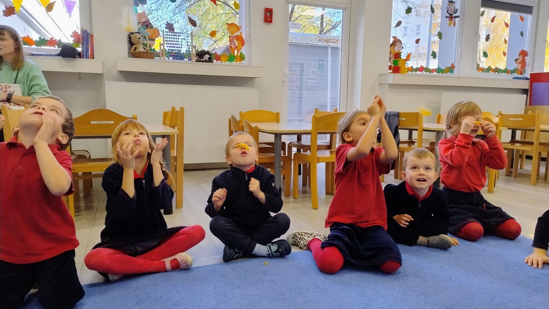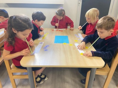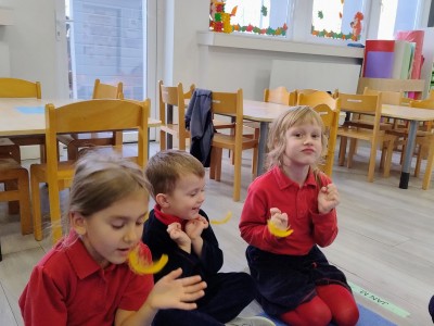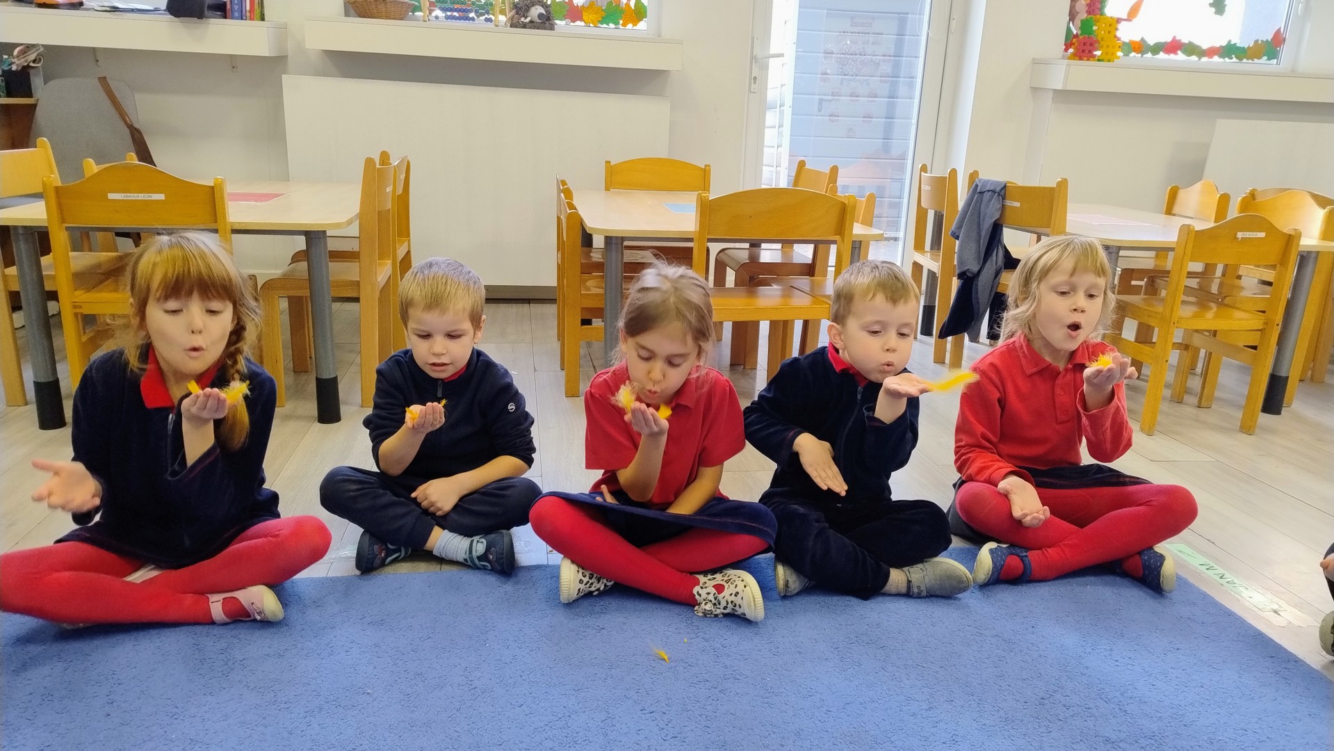 Podczas zajęć przedszkolaki utrwalały również poznane sylaby oraz ćwiczyły rozróżnianie prawej i lewej strony.