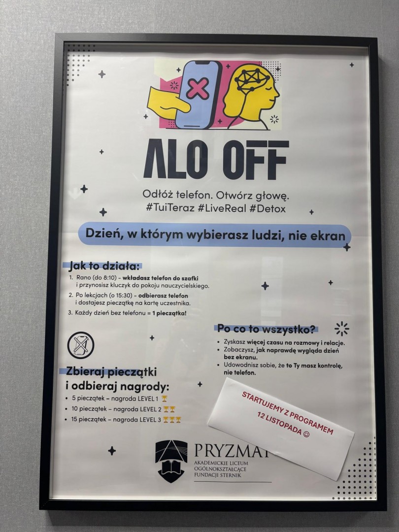 Od dnia 12 listopada funkcjonuje w naszym Liceum nowy program mający w pozytywny sposób zachęcić uczniów do odkładania telefonu na cały dzień spędzony w szkole.