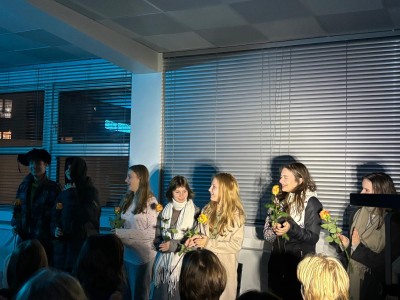 Serdecznie gratulujemy błyskotliwego debiutu pani reżyser, Marii Wierzbickiej oraz aktorom - głównie z kl. 1 LO, którzy wzruszyli publiczność do łez!