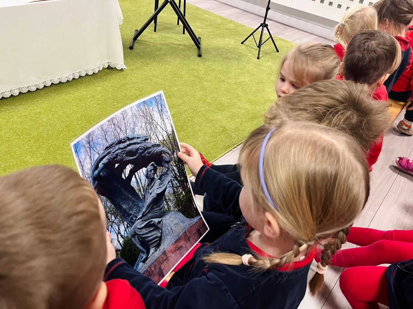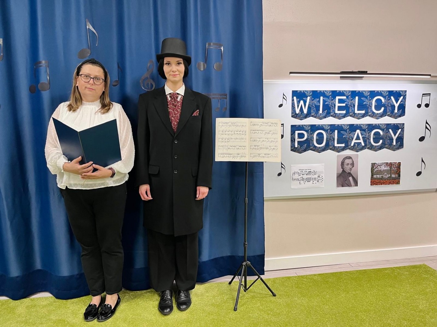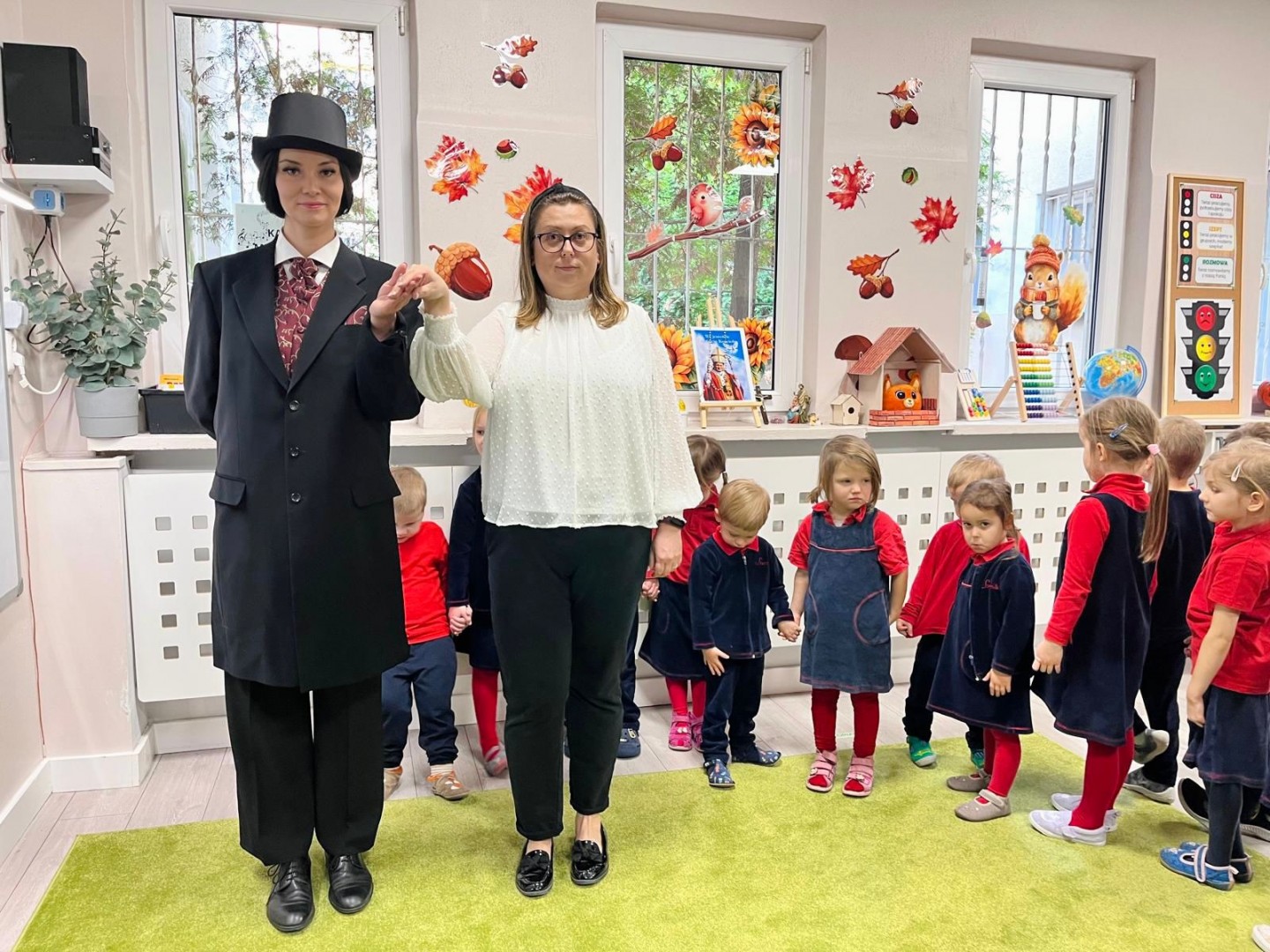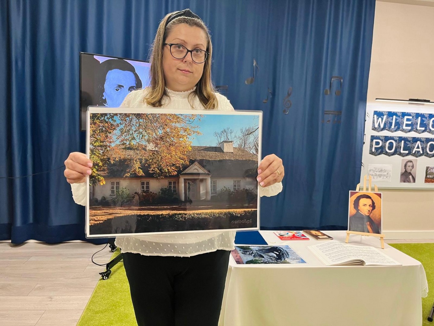 Dzieci dowiedziały się, gdzie się urodził, jak wyglądało jego dzieciństwo oraz w jakich miejscach mieszkał podczas swojego życia. Poznały także instrument, na którym tworzył swoje niezwykłe utwory oraz wysłuchały informacji o najważniejszych kompozycjach artysty. Na zakończenie zajęć czekała na dzieci wyjątkowa niespodzianka. W sali pojawiła się postać Fryderyka Chopina i usłyszeliśmy kilka jego utworów, dzięki temu przedszkolaki mogły poczuć klimat prawdziwego koncertu i jeszcze lepiej zrozumieć, jak brzmiała muzyka naszego wielkiego kompozytora.