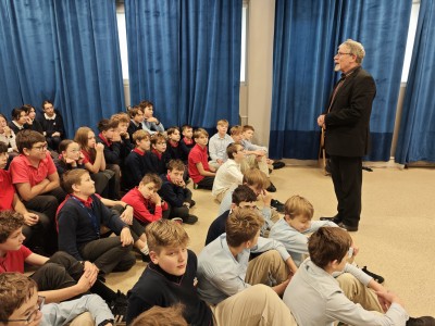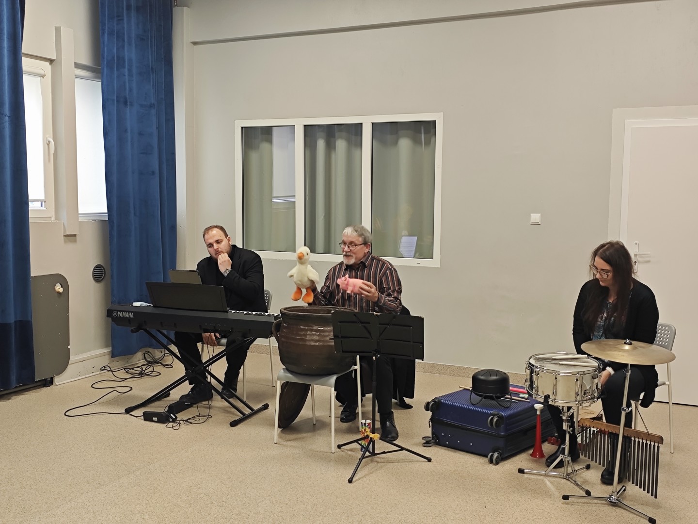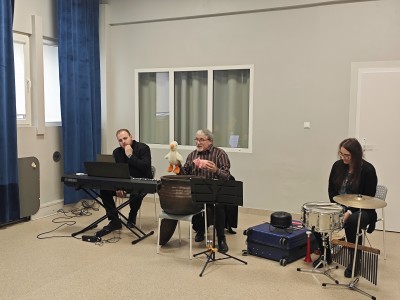 Uczniowie i uczennice z 6 i 7 klas mieli okazję wysłuchania programu będącego połączeniem smakowitych opowieści z muzyką i poezją. Wykonawcy zachęcali do odkrycia tajemniczej i niezwykle muzykalnej kuchni! Znalazły się tam: spory talerz, ogromny rondel, a także różnorodne mieszadła – pałeczki, miotełki, szczypce i ubijaki. Oczywiście nie mogło też zabraknąć kociołka, który swoimi dźwiękami potrafi stworzyć pyszne chińskie potrawy.