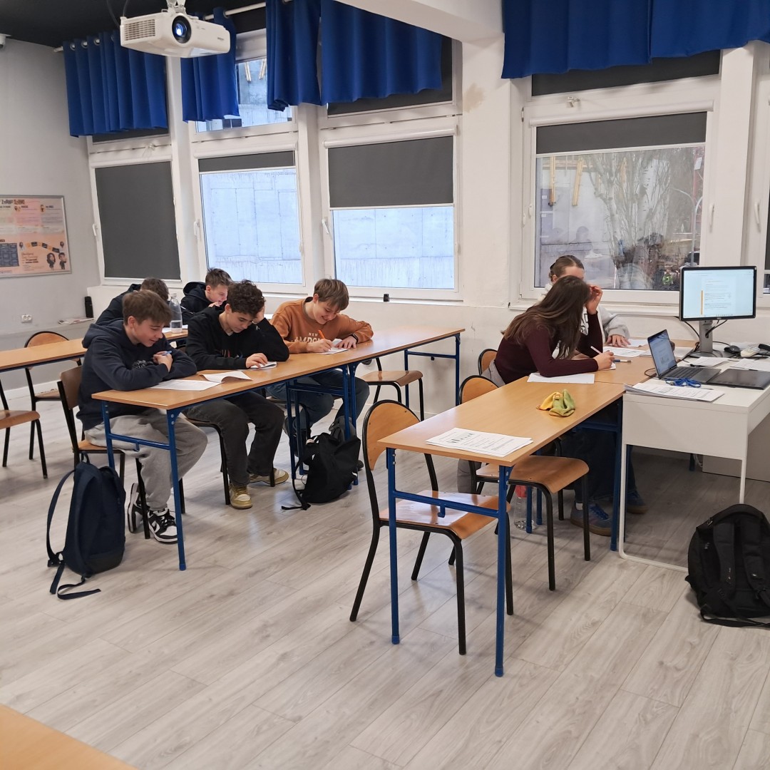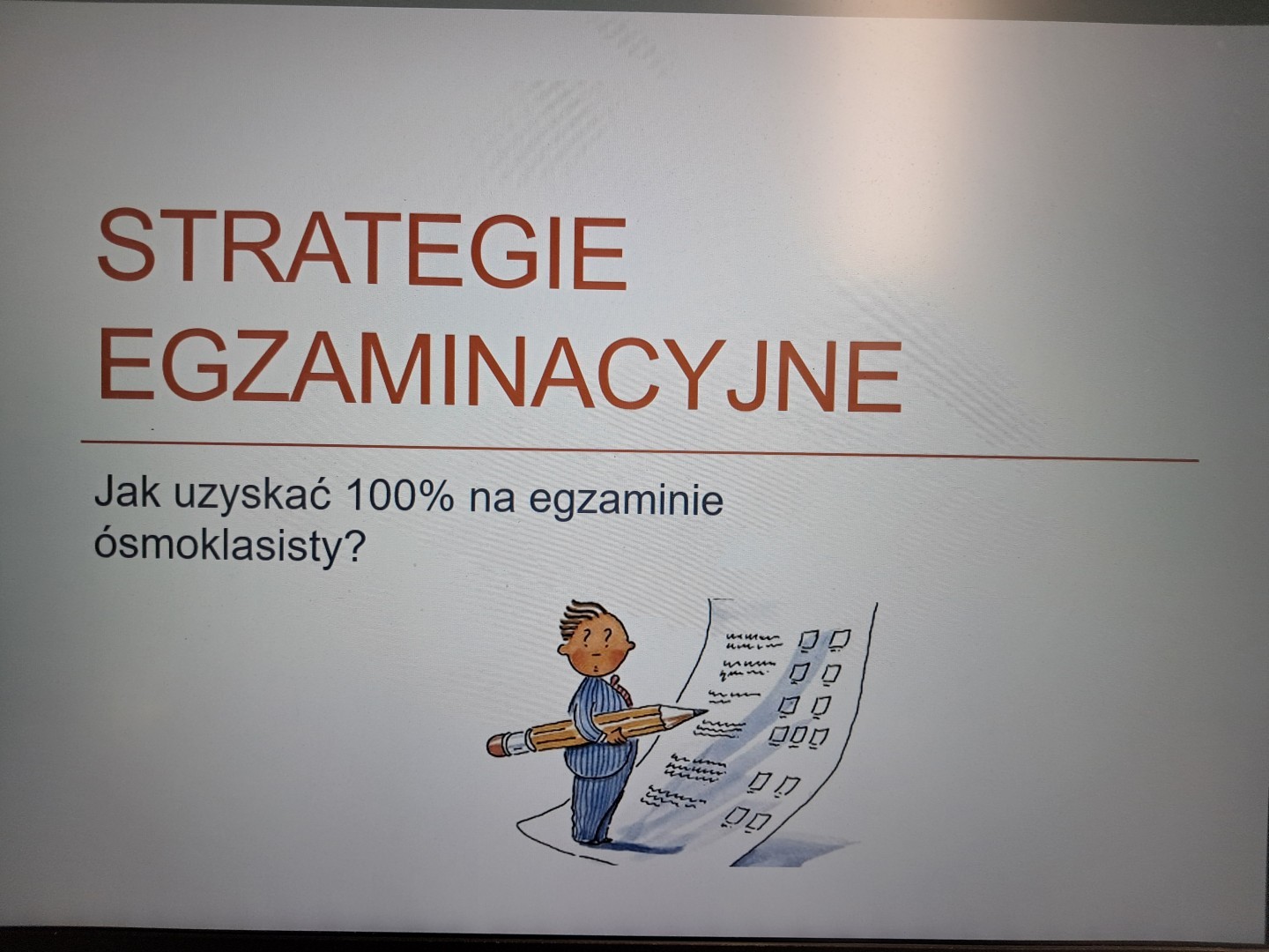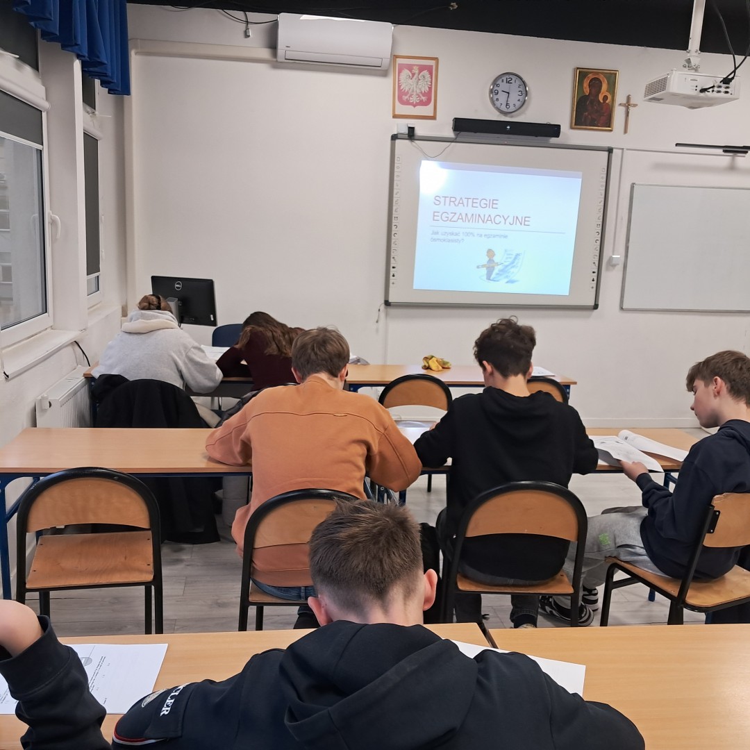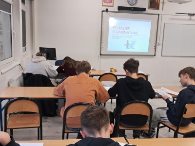 Nauczyciel omówił strategie rozwiązywania zadań zamkniętych na egzaminie ósmoklasisty, następnie wszyscy ćwiczyli rozwiązywanie zadań zamkniętych. Na koniec uczniowie rozwiązywali przykładowy test ósmoklasisty i dostali informację zwrotną o swoim wyniku.