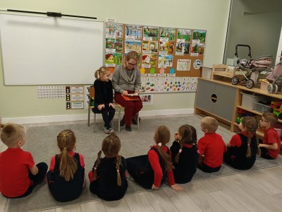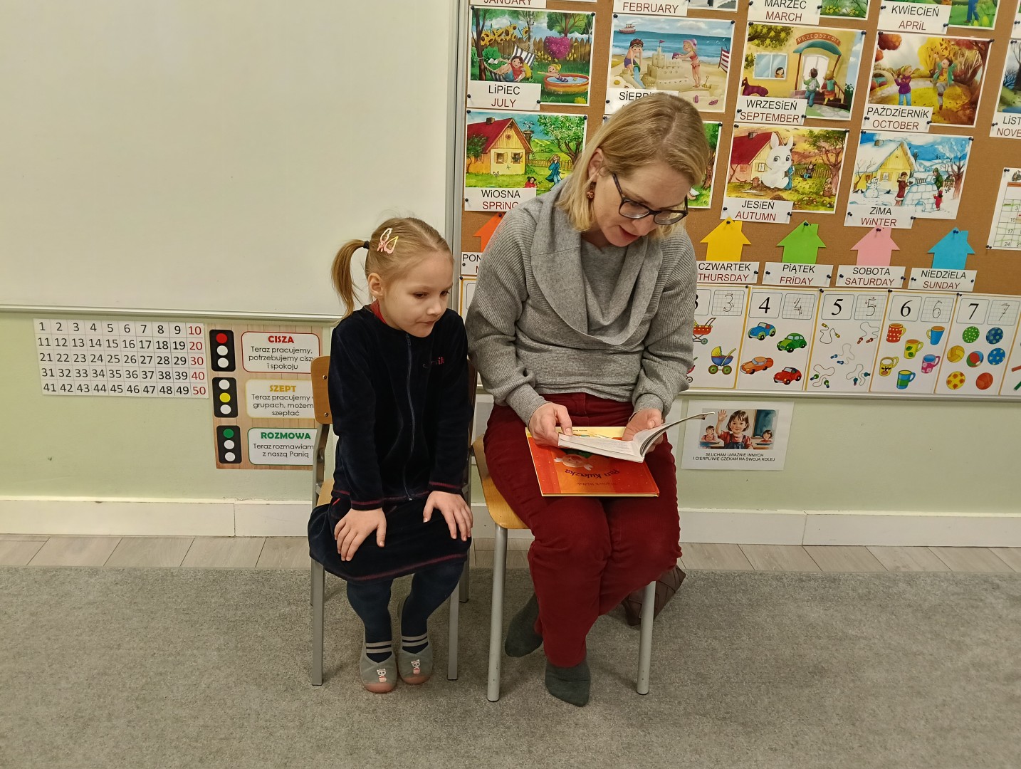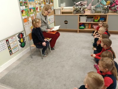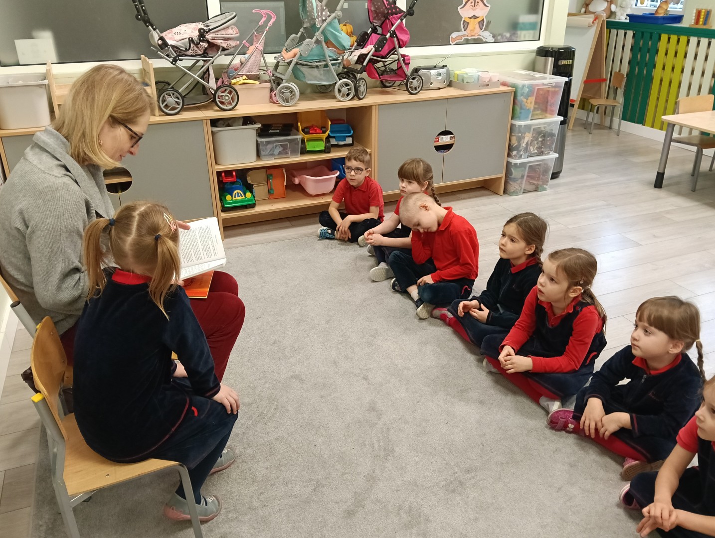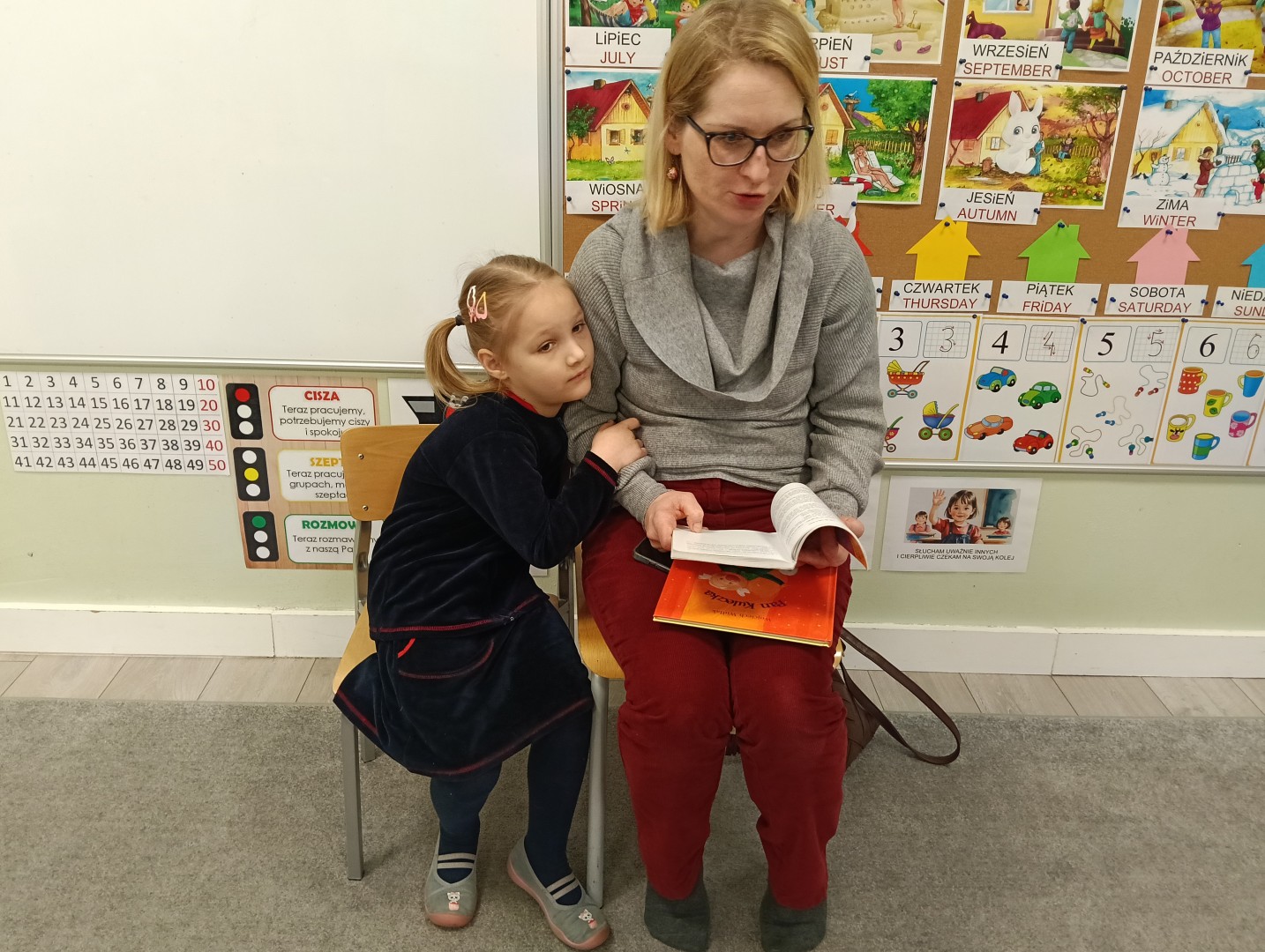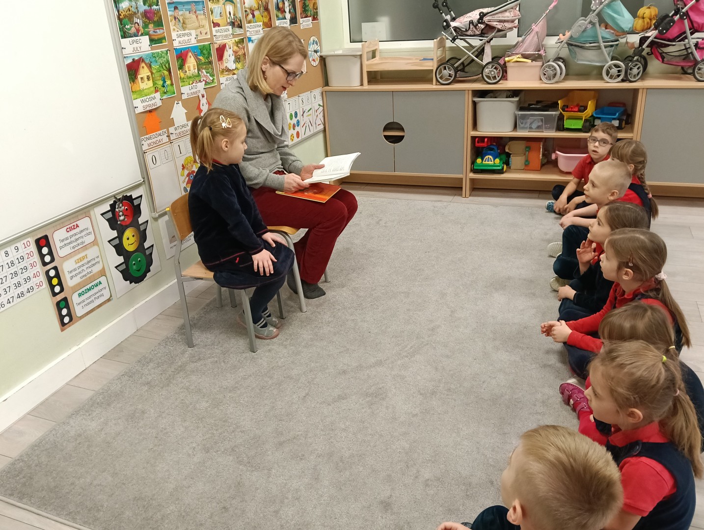W ramach akcji „Poczytaj mi, tato; poczytaj mi, mamo!" odwiedziła nas mama Marysi – Pani Magdalena, która w wyjątkowy sposób wprowadziła dzieci w świat mądrych i pełnych ciepła opowieści.