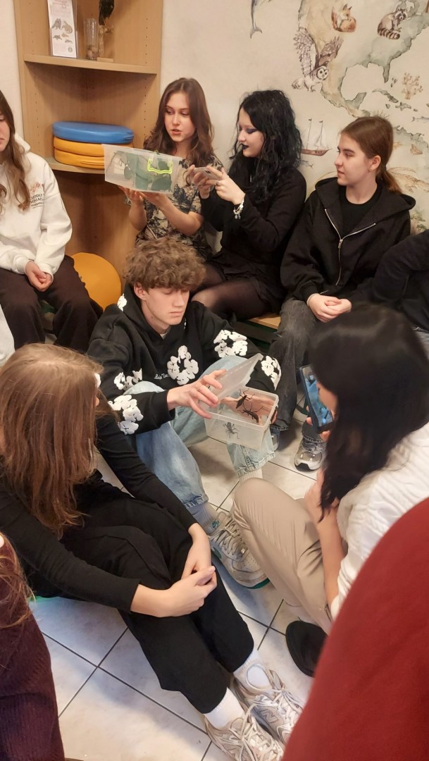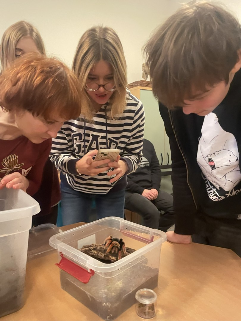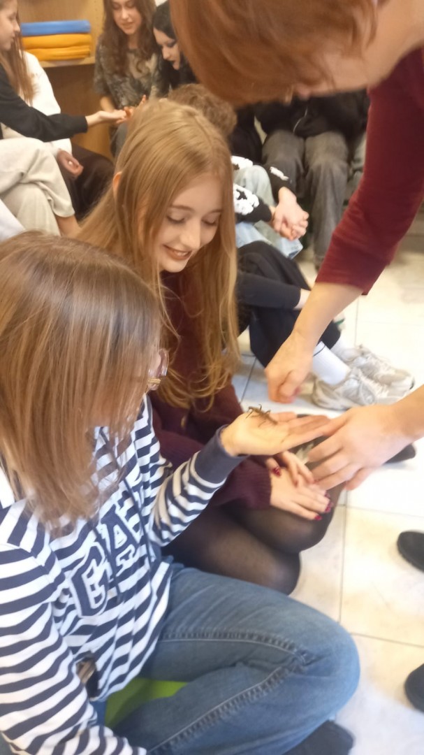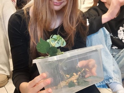 Podczas zajęć mieli okazję poznać żywe bezkręgowce, w tym egzotyczne gatunki popularne w hodowli amatorskiej. Była to doskonała szansa, aby: