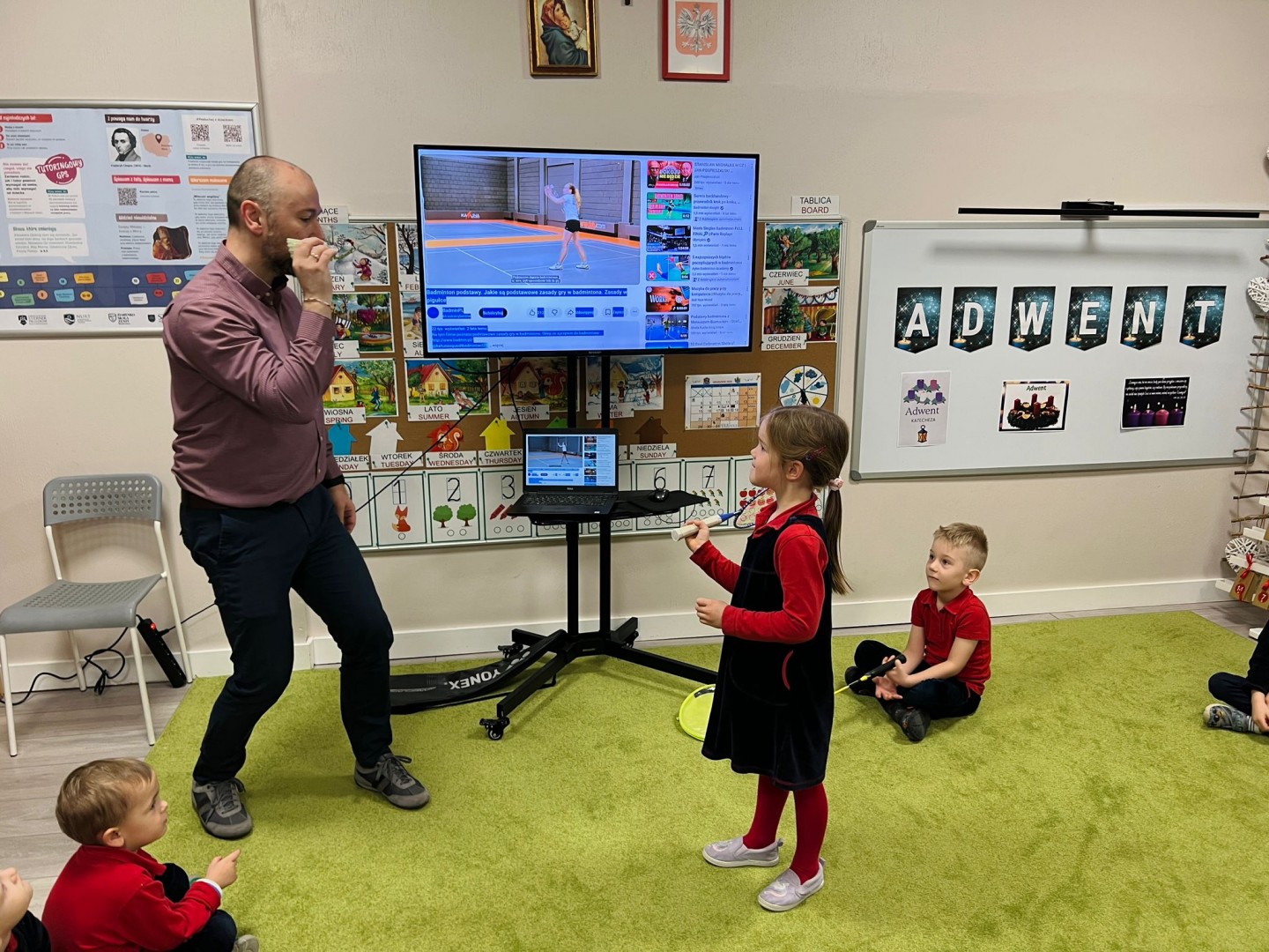 Tata Adasia podkreślił, dlaczego badminton jest świetnym sportem dla dzieci – rozwija koordynację ruchową, szybkość, refleks, a jednocześnie jest lekki, bezpieczny i pełen zabawy. Dzieci z zainteresowaniem słuchały i zadawały pytania. Na zakończenie chętne dzieci mogły spróbować odbić lotkę i poczuć się jak prawdziwy sportowiec. To było inspirujące spotkanie, które zachęciło przedszkolaków do aktywności fizycznej.