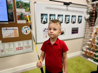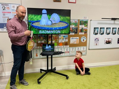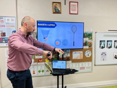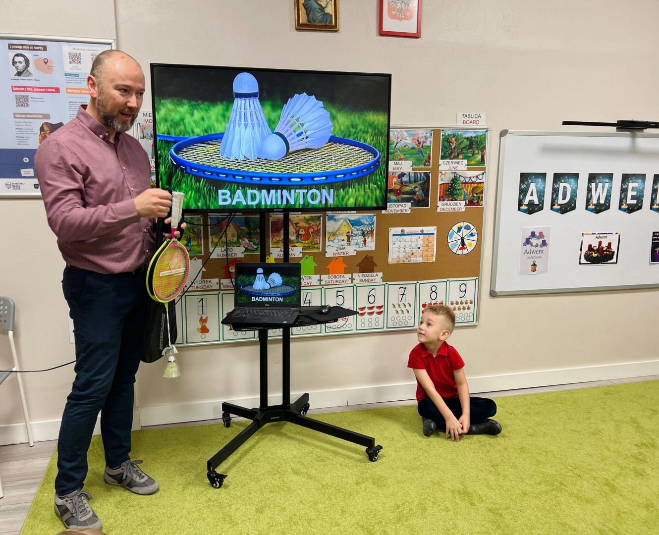 Podczas spotkania przedstawił przygotowaną prezentację, w której pokazał, jakie akcesoria są potrzebne do gry, m.in. rakietki, lotki oraz siatka. Wyjaśnił także w przystępny sposób podstawowe zasady badmintona, opowiadając o tym, jak wygląda gra i na czym polega zdobywanie punktów.