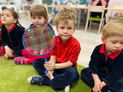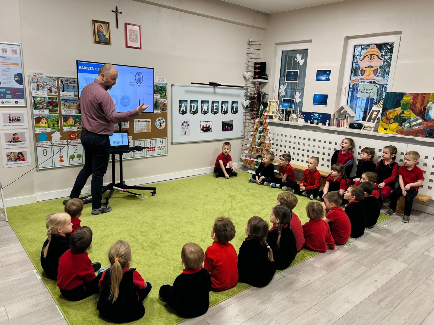 Do naszego przedszkola przyszedł pan Bartłomiej - tata Adasia z grupy Zajączków, który opowiedział dzieciom o swojej pasji – grze w badmintona.