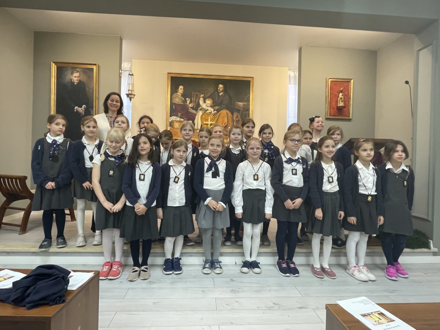 Podczas wtorkowej Mszy św. uczennice kl.2 P otrzymały szkaplerz NMP z Góry Karmel.