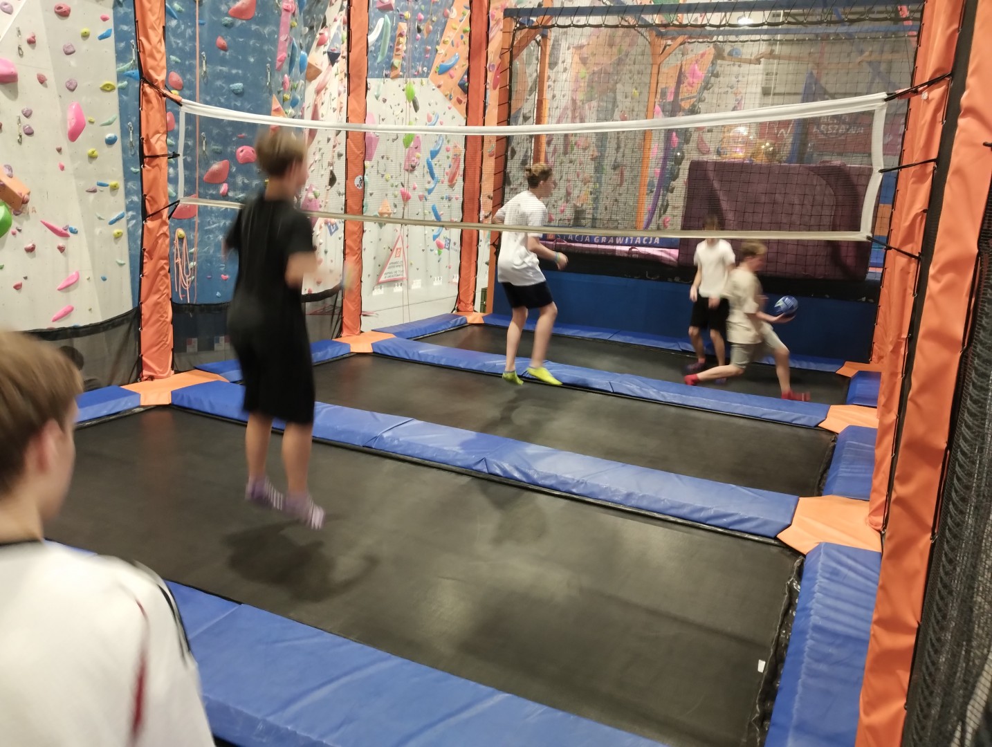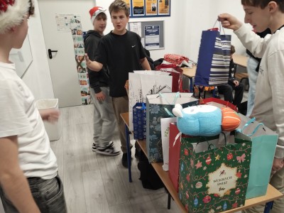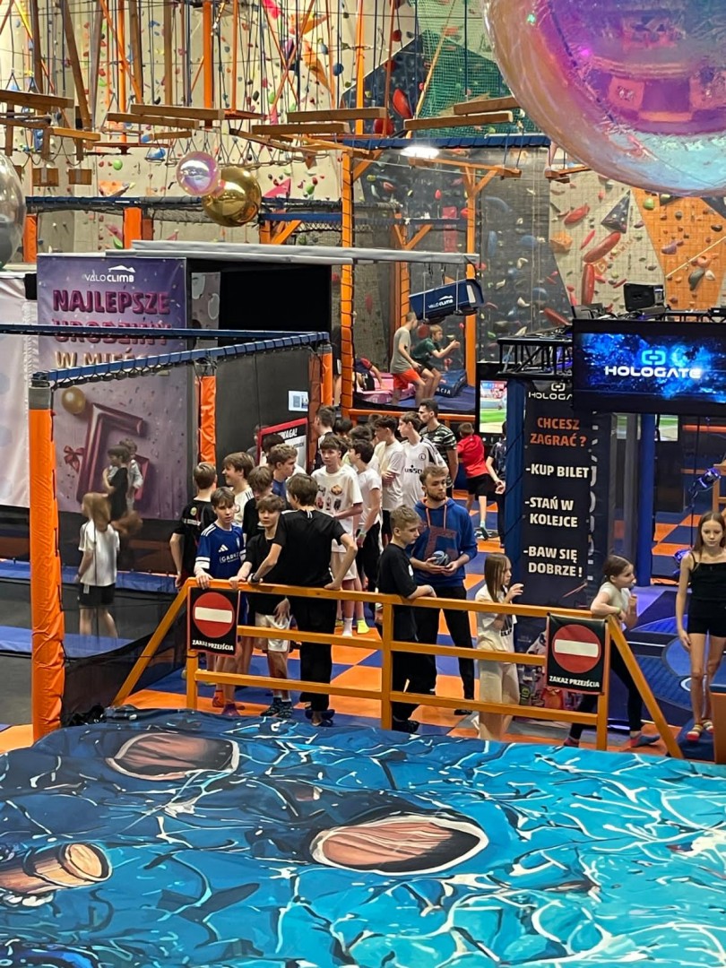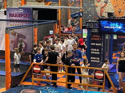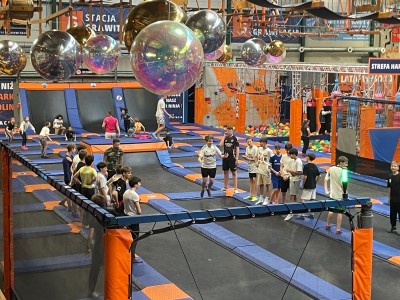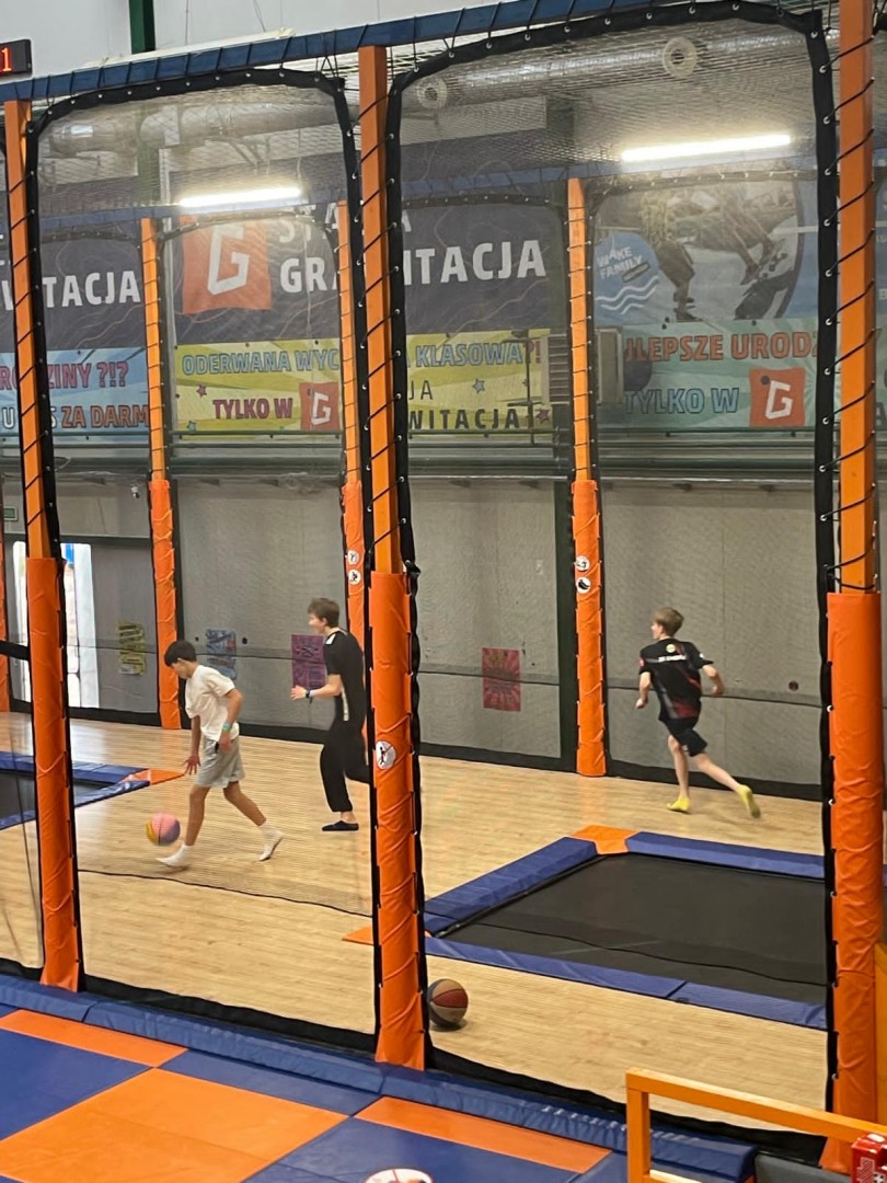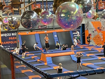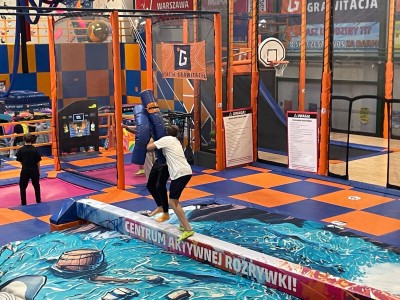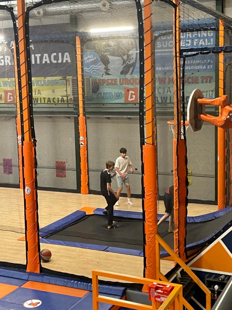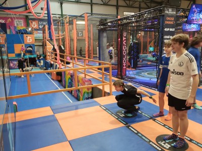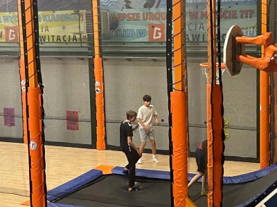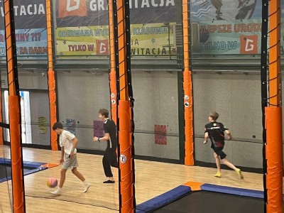 Dzień mikołajkowy rozpoczęliśmy od wręczenia sobie drobnych podarunków i wstępnych przygotowań do kiermaszu. Następnie wybraliśmy się na dwie godziny do Stacji Grawitacji, gdzie najpierw wzięliśmy udział w godzinnej lekcji w-f z instruktorem. Druga godzina to było już swobodne skakanie na trampolinach. Nieoczekiwanie spotkaliśmy również dziewczyny z klasy 8p, które również wybrały się do parku trampolin.