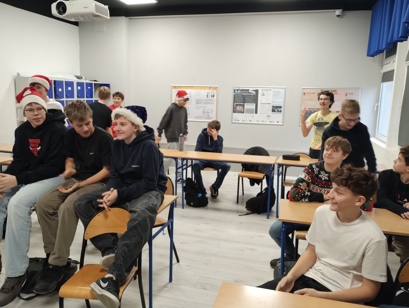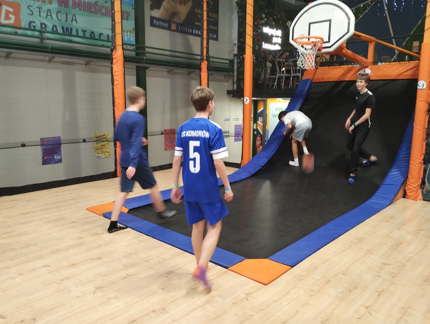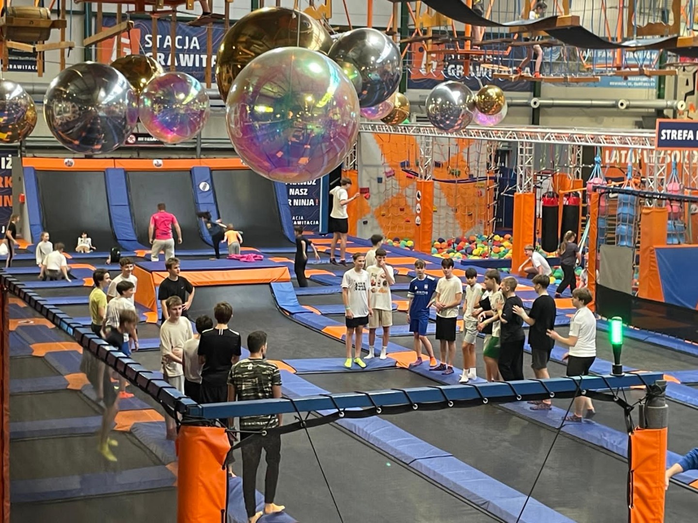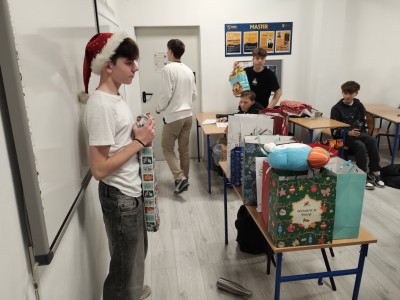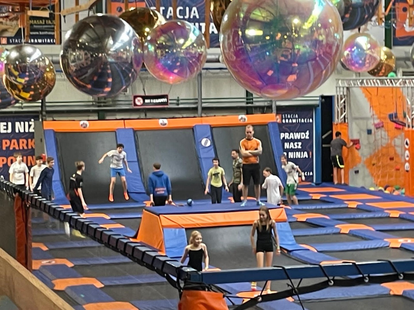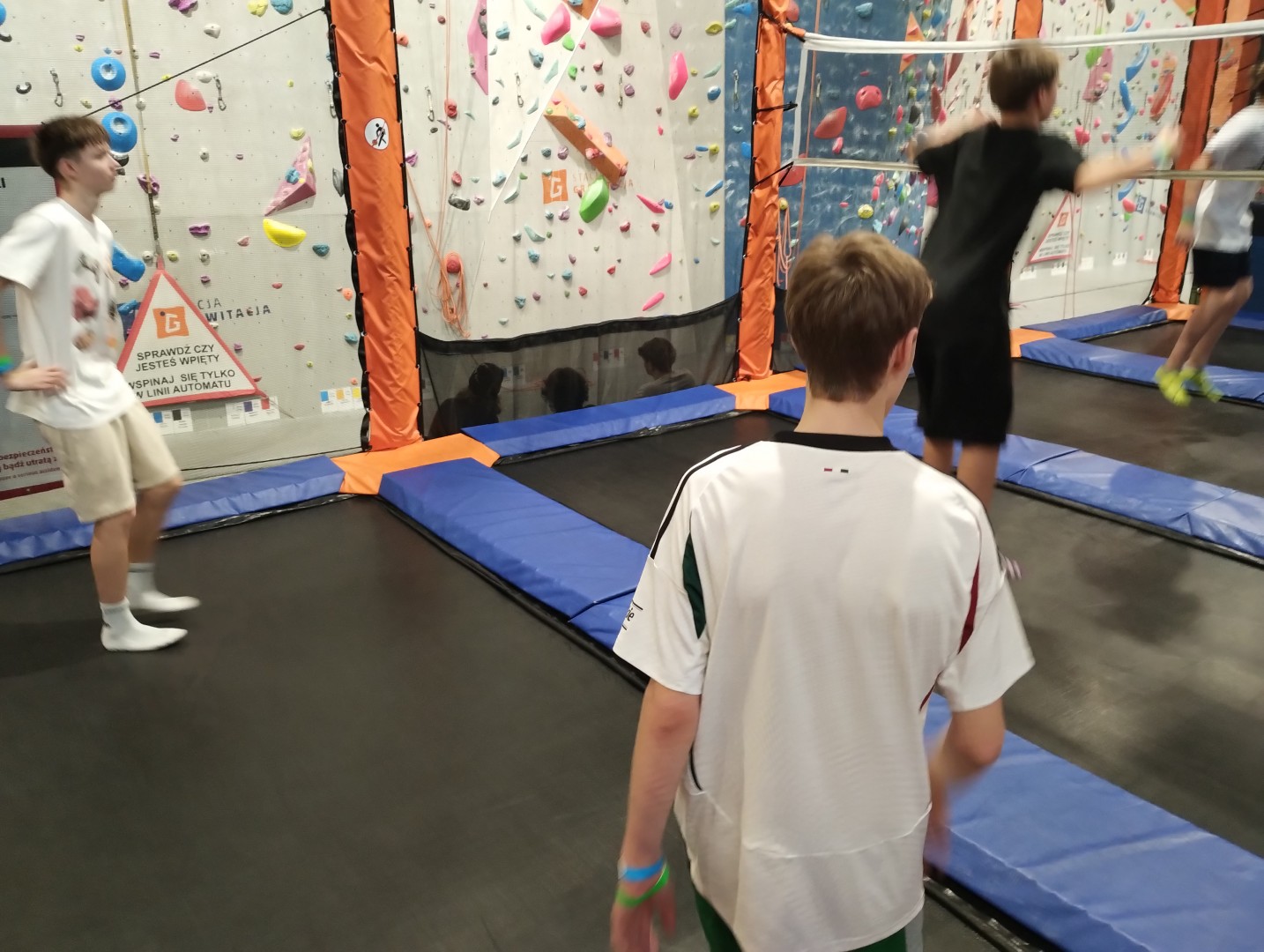 Dzień mikołajkowy rozpoczęliśmy od wręczenia sobie drobnych podarunków i wstępnych przygotowań do kiermaszu. Następnie wybraliśmy się na dwie godziny do Stacji Grawitacji, gdzie najpierw wzięliśmy udział w godzinnej lekcji w-f z instruktorem. Druga godzina to było już swobodne skakanie na trampolinach. Nieoczekiwanie spotkaliśmy również dziewczyny z klasy 8p, które również wybrały się do parku trampolin.