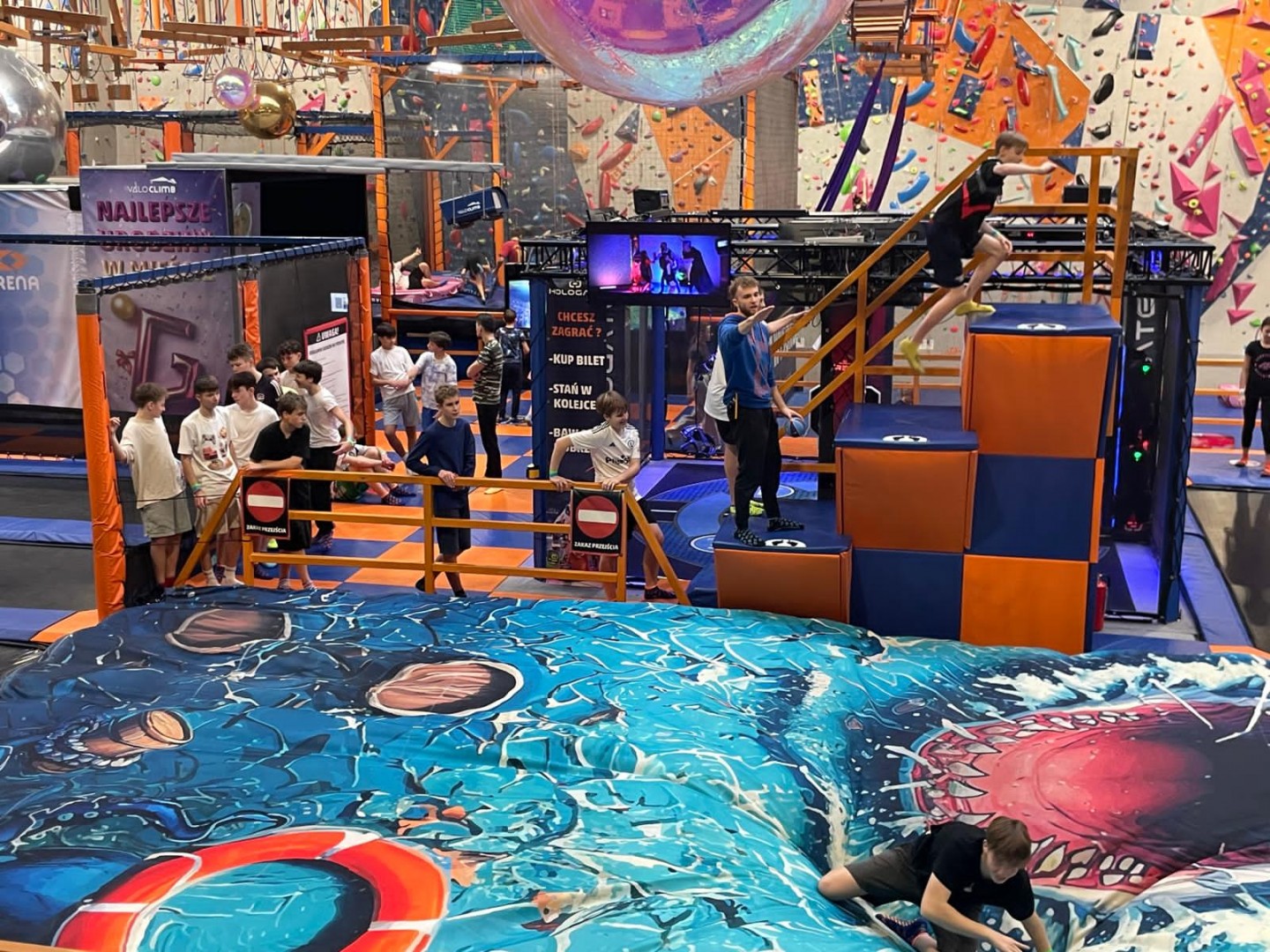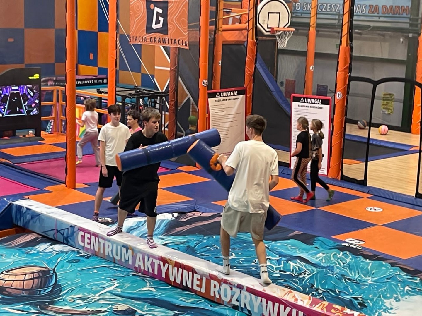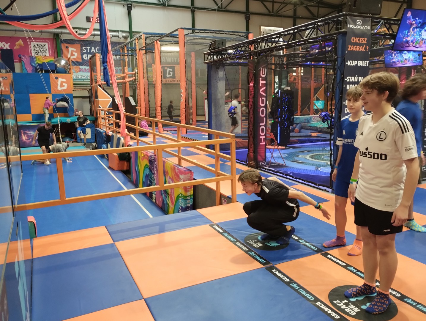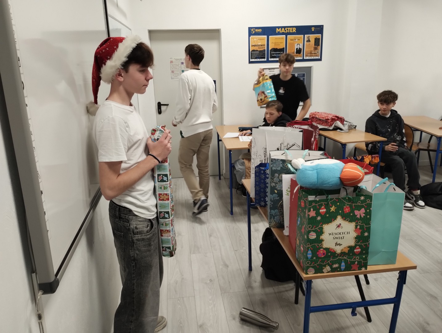 Dzień mikołajkowy rozpoczęliśmy od wręczenia sobie drobnych podarunków i wstępnych przygotowań do kiermaszu. Następnie wybraliśmy się na dwie godziny do Stacji Grawitacji, gdzie najpierw wzięliśmy udział w godzinnej lekcji w-f z instruktorem. Druga godzina to było już swobodne skakanie na trampolinach. Nieoczekiwanie spotkaliśmy również dziewczyny z klasy 8p, które również wybrały się do parku trampolin.