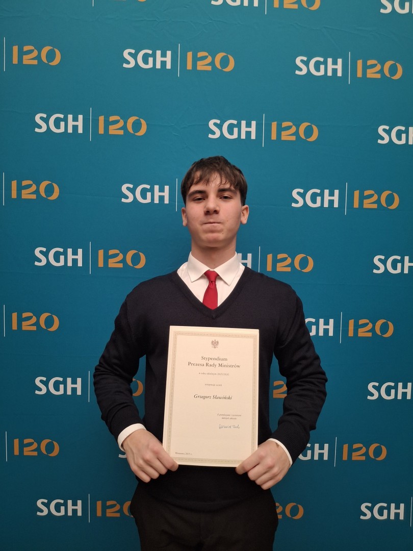 Z radością i dumą informujemy, że uczeń obecnej kl. 4, Grzegorz Sławiński, otrzymał stypendium Prezesa Rady Ministrów za wybitne wyniki w nauce w roku szkolnym 2024/25.