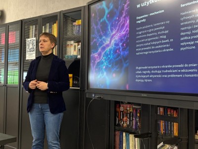 Profesor Przybysz, która od lat prowadzi badania szczególnie nad zjawiskiem hejtu i trollingu w internecie, w bardzo przekonujący sposób opowiadała nam o rewolucyjnym wpływie nowych technologii na naszą gospodarkę hormonalną. Pokazując mechanizmy działania neuroprzekaźników, zachęcała nas do wykształcenia nawyków związanych z korzystaniem ze smartfonów, szczególnie w godzinach porannych i wieczornych - w ten sposób mamy szansę zadbać o właściwy poziom dopaminy, serotoniny czy melatoniny w naszych organizmach.