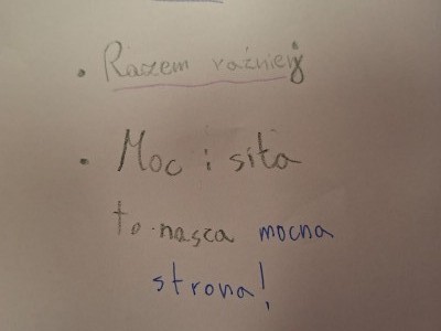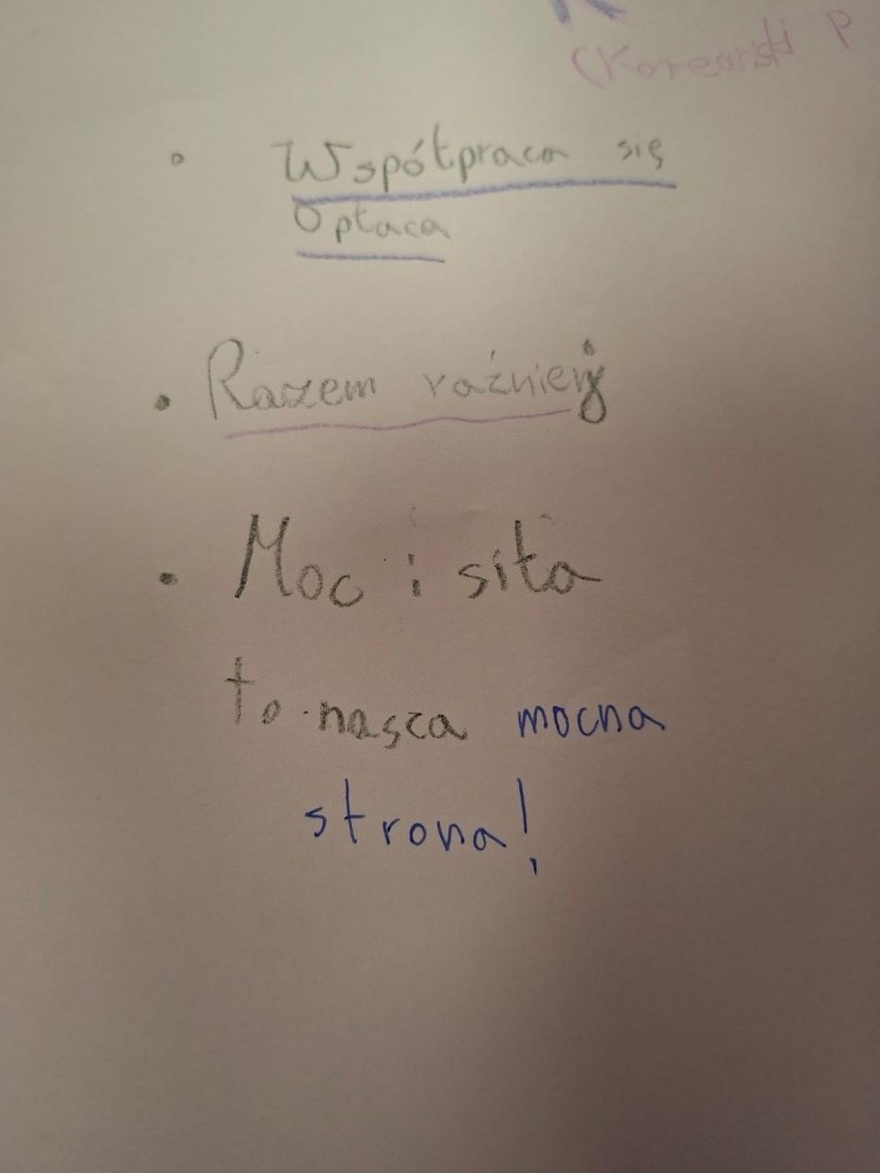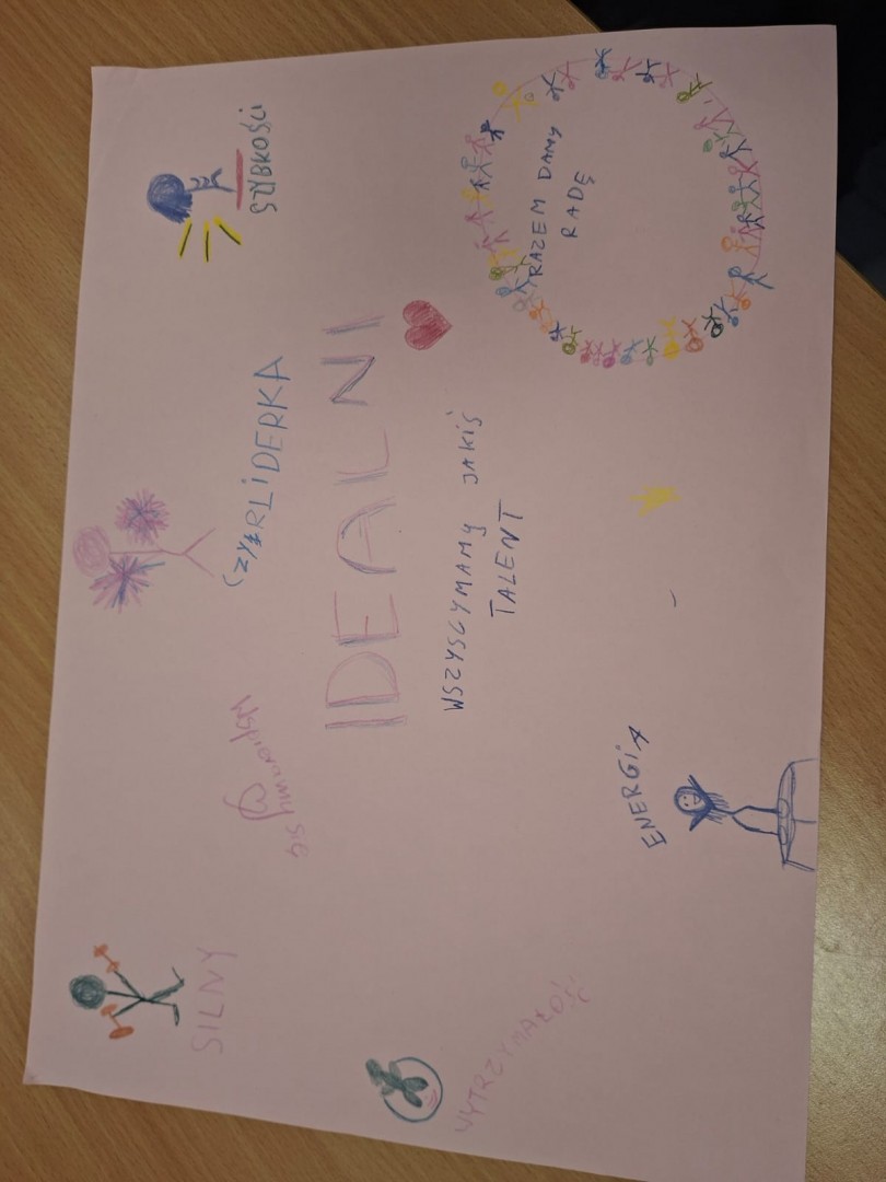 Kolejnym etapem było ćwiczenie polegające na budowaniu mostów. Warsztaty zakończyliśmy przygotowaniem i omówieniem plakatów idealnej drużyny.