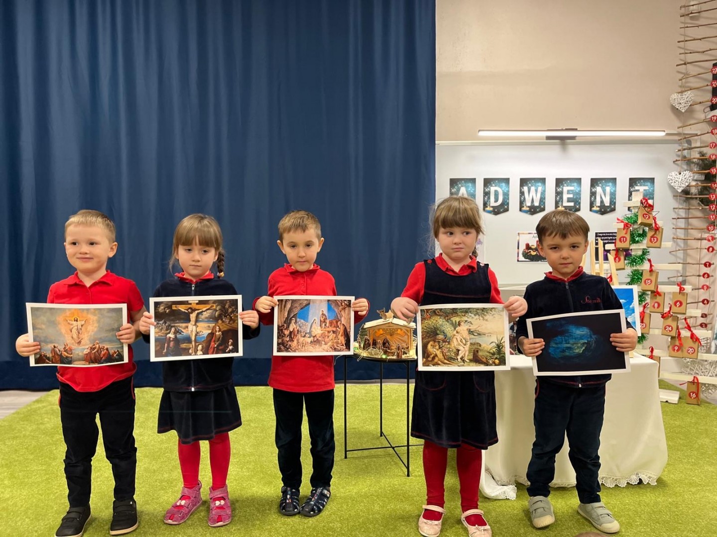 Podczas zajęć poznały historię Zwiastowania, kiedy to Anioł Gabriel przyszedł do Maryi i przekazał Jej radosną wiadomość, że zostanie Mamą Pana Jezusa. Przedszkolaki dowiedziały się również, że Maryja była od początku swojego życia pełna Bożej miłości, dlatego Kościół nazywa Ją Niepokalanym Poczęciem, a w prostych słowach wyjaśniono im, że Maryja była dobra, czysta i bardzo blisko Pana Boga.
