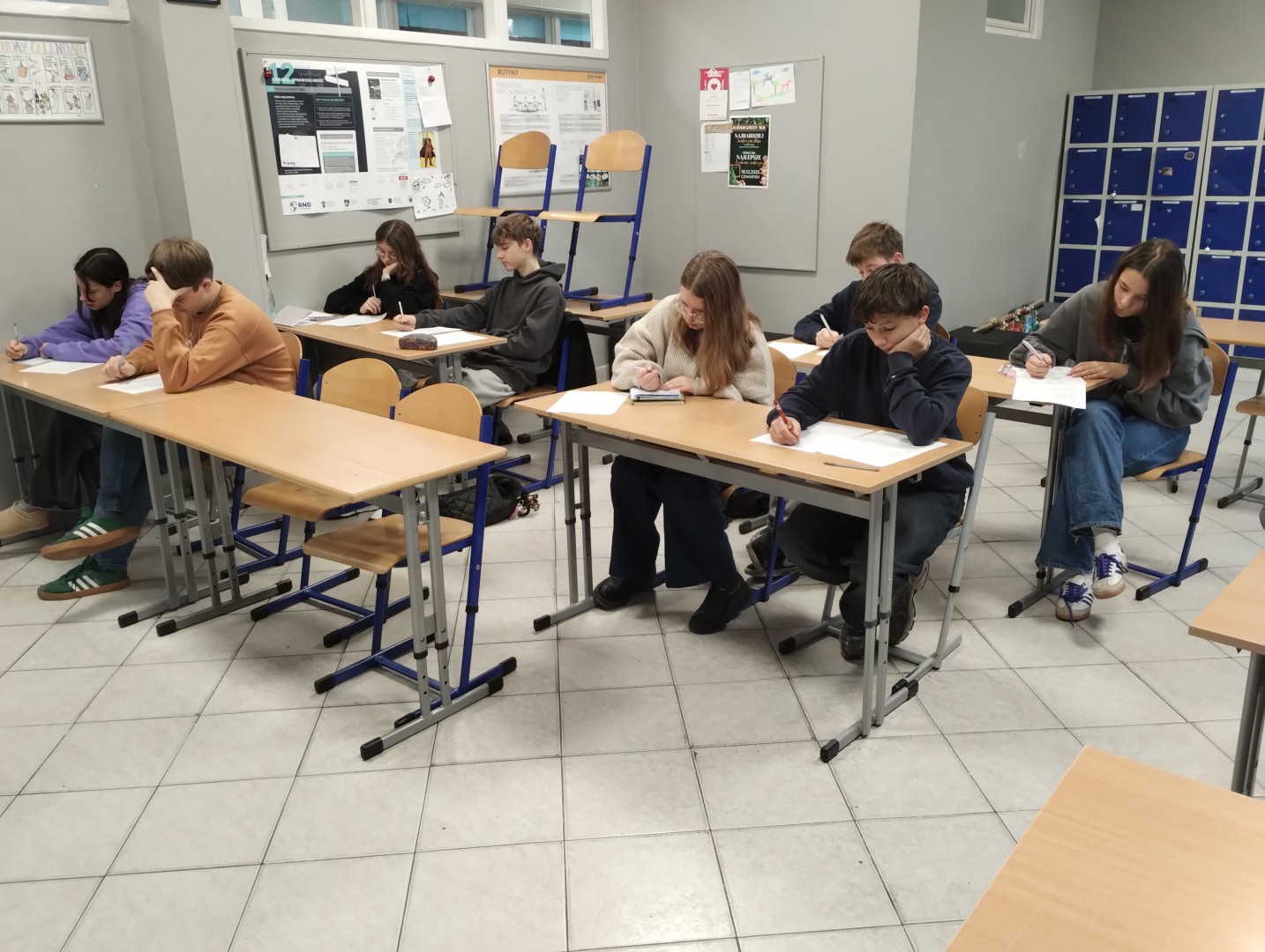 Uczniowie klas 7 i 8 postanowili spędzić część soboty na przygotowaniach do E8. Tym razem mierzyli się z rozprawką i przemówieniem.