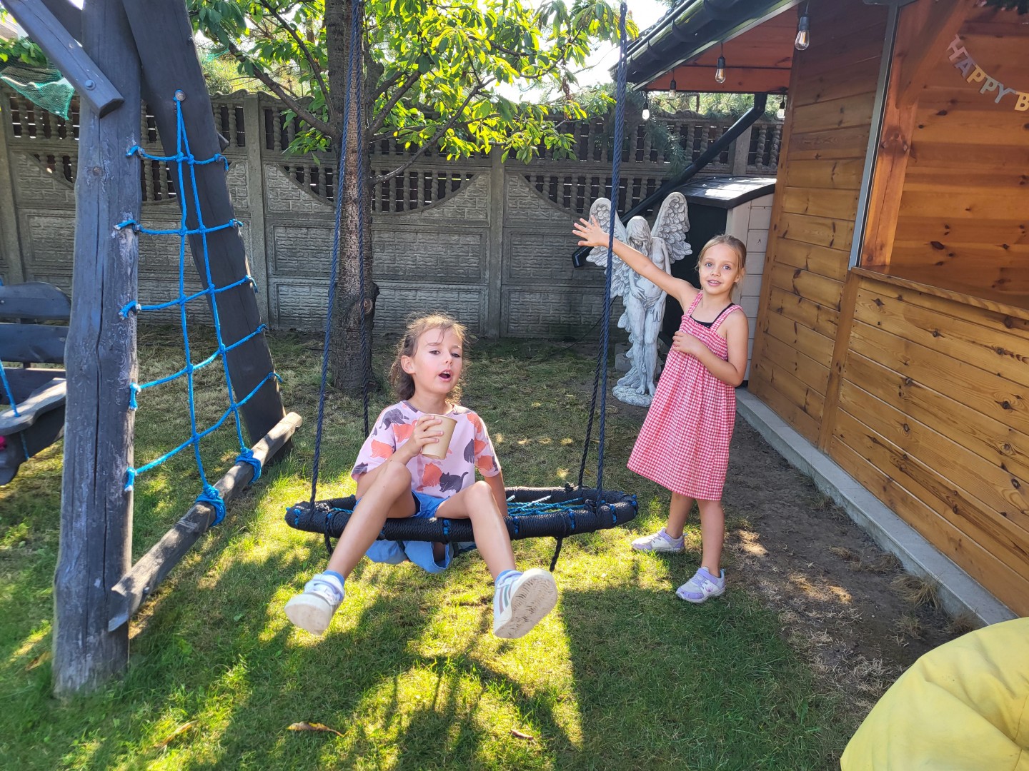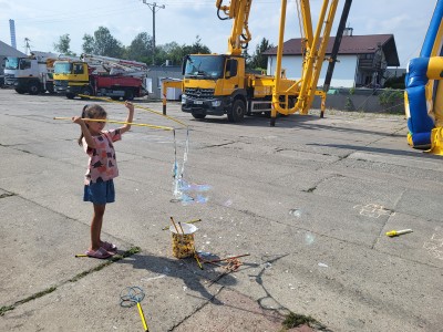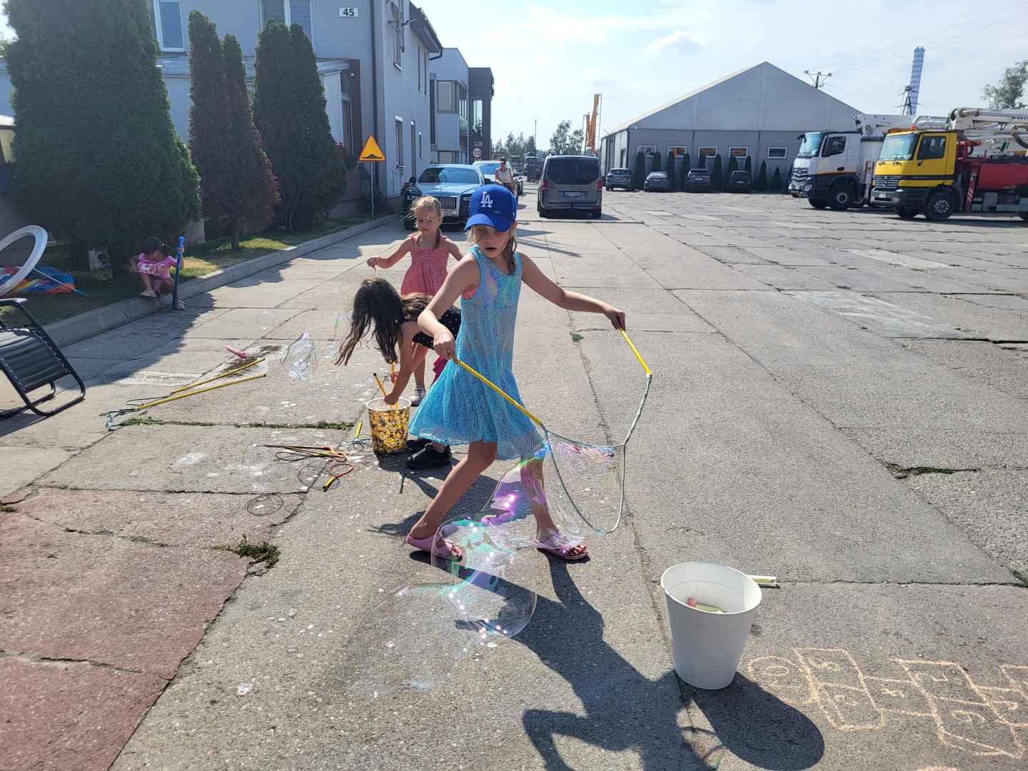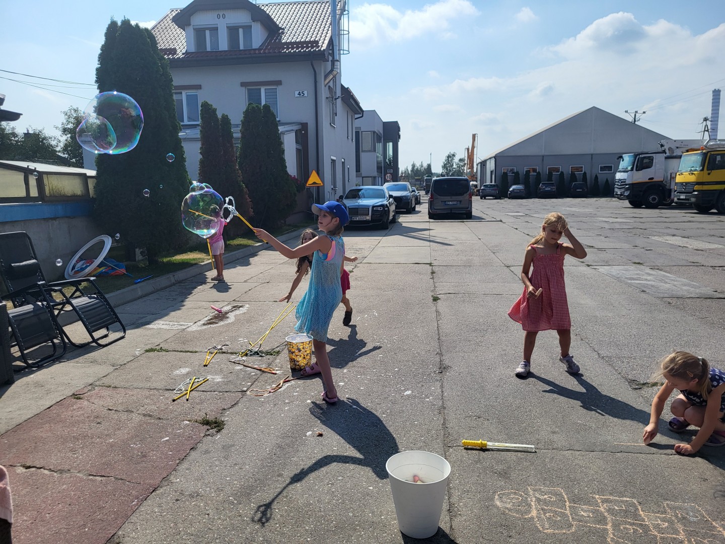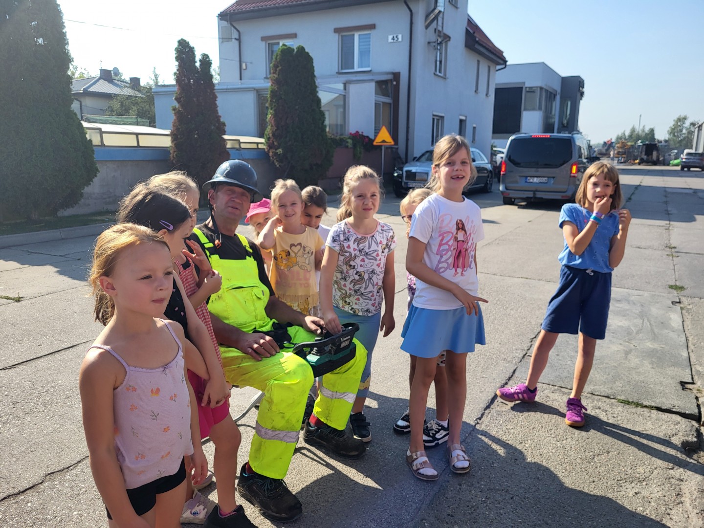 Na pewno niektórzy Tatusiowie mogą podpisać ze swoimi córkami umowę współpracy przy najbliższym remoncie lub budowie;) Dziewczynki oglądały sprzęt budowlany: pompy do betonu i pompogruszki oraz uczyły się nimi sterować. Tata Hani nadzorował proces wspólnego tworzenia betonu, w którym zostały odciśnięte dłonie, stopy i inne rysunki. Może w szkole przyda się kiedyś taka betonowa artystyczna płyta... Mama Hani oprowadziła nas po różnych częściach obiektu, gdzie mieszkało ptactwo domowe (kury, kaczki, gęsi, perliczki), psy, kameleon, kolorowe karpie koi i ogromne jesiotry, które lubią być głaskane:) Dziewczynki poznały również pracę groomera - specjalisty zajmującego się pielęgnacją zwierząt domowych. Kolejną atrakcją był dmuchaniec, a dzięki letniej pogodzie udała się kąpiel w basenie i zabawa na wodnej ślizgawce. Na koniec pojawił się urodzinowy tort Hani i radosne "Sto lat". Spełnienia marzeń, Haniu! Dziękujemy Pani Agnieszce i Panu Michałowi za zaangażowanie i ciepłe przyjęcie całej klasy.