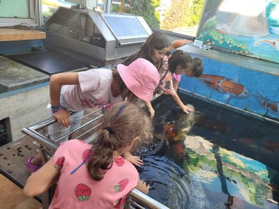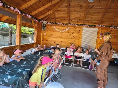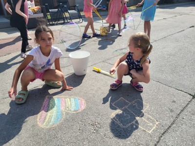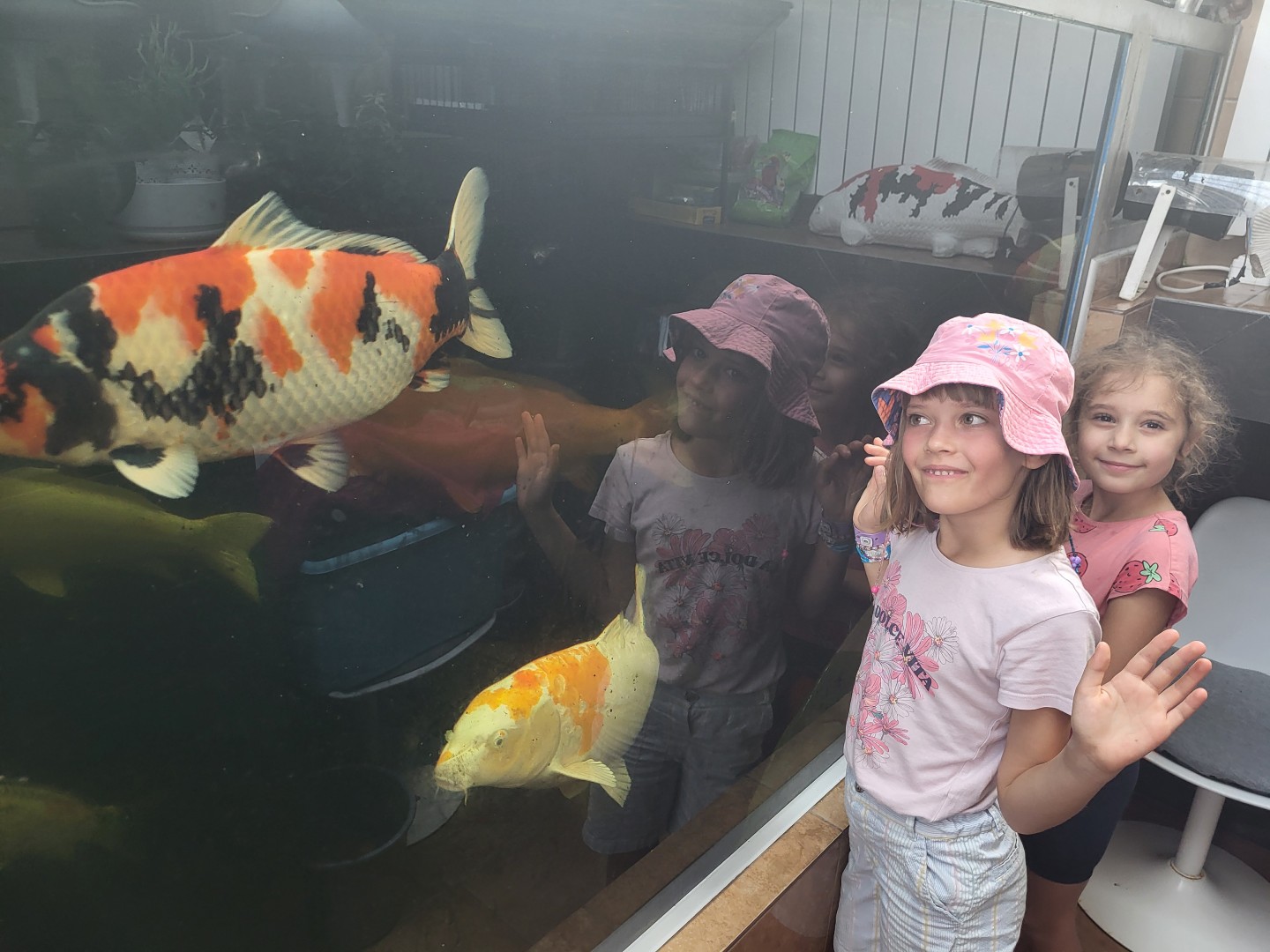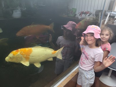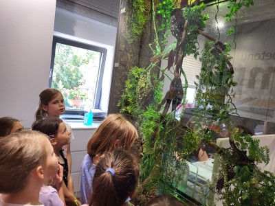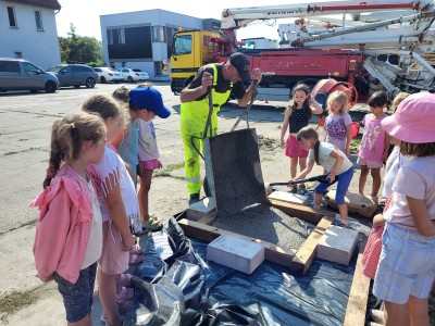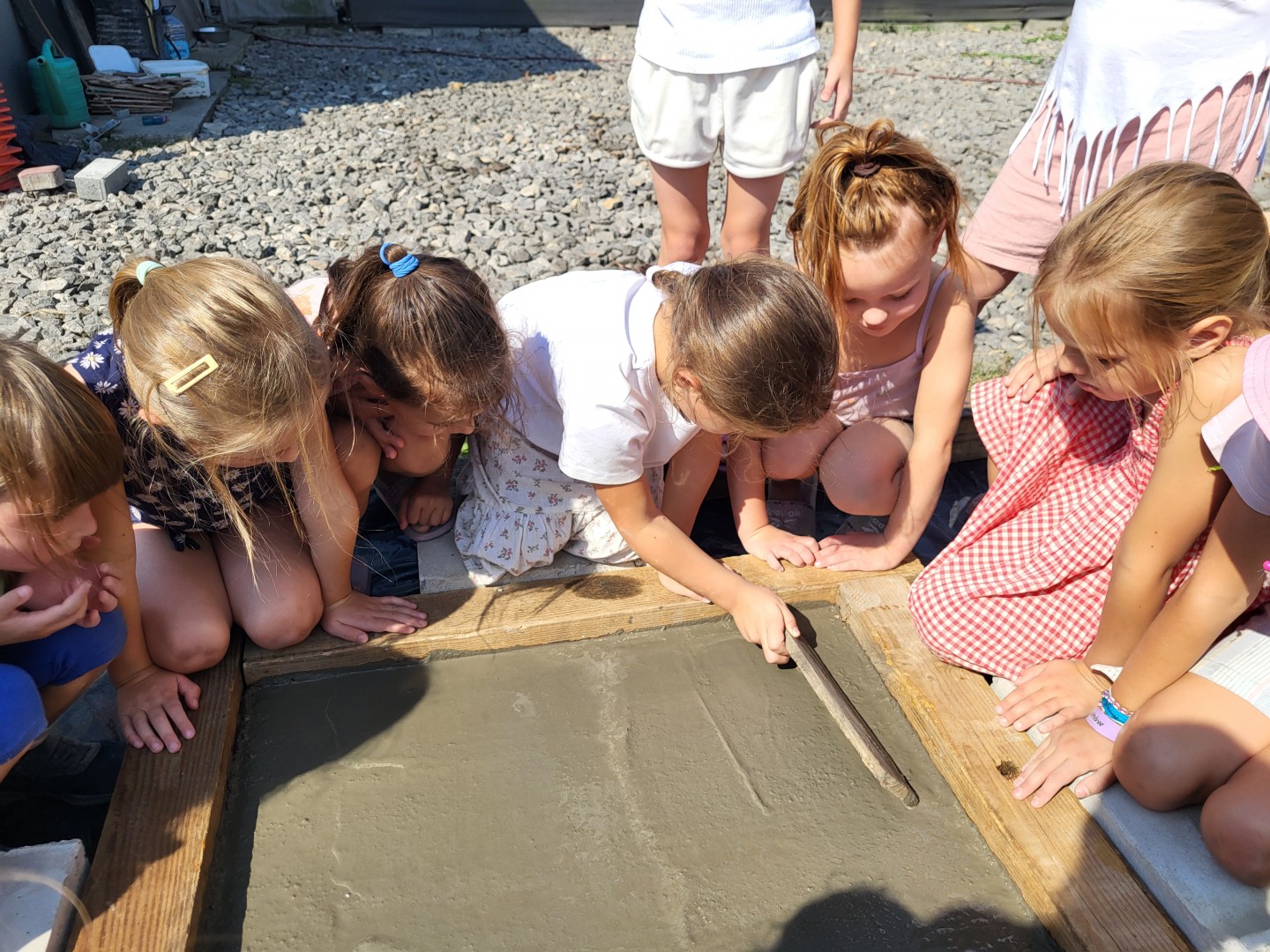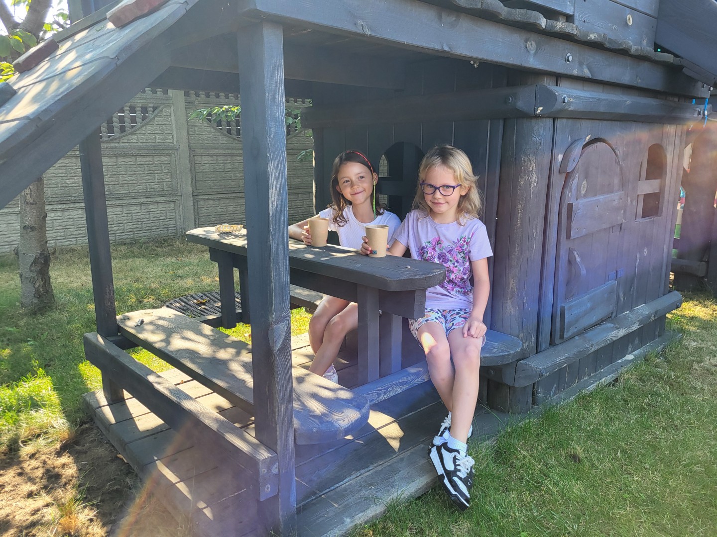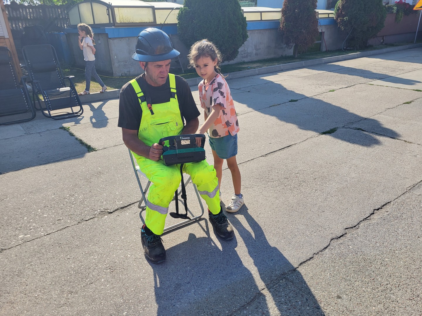 Na pewno niektórzy Tatusiowie mogą podpisać ze swoimi córkami umowę współpracy przy najbliższym remoncie lub budowie;) Dziewczynki oglądały sprzęt budowlany: pompy do betonu i pompogruszki oraz uczyły się nimi sterować. Tata Hani nadzorował proces wspólnego tworzenia betonu, w którym zostały odciśnięte dłonie, stopy i inne rysunki. Może w szkole przyda się kiedyś taka betonowa artystyczna płyta... Mama Hani oprowadziła nas po różnych częściach obiektu, gdzie mieszkało ptactwo domowe (kury, kaczki, gęsi, perliczki), psy, kameleon, kolorowe karpie koi i ogromne jesiotry, które lubią być głaskane:) Dziewczynki poznały również pracę groomera - specjalisty zajmującego się pielęgnacją zwierząt domowych. Kolejną atrakcją był dmuchaniec, a dzięki letniej pogodzie udała się kąpiel w basenie i zabawa na wodnej ślizgawce. Na koniec pojawił się urodzinowy tort Hani i radosne "Sto lat". Spełnienia marzeń, Haniu! Dziękujemy Pani Agnieszce i Panu Michałowi za zaangażowanie i ciepłe przyjęcie całej klasy.
