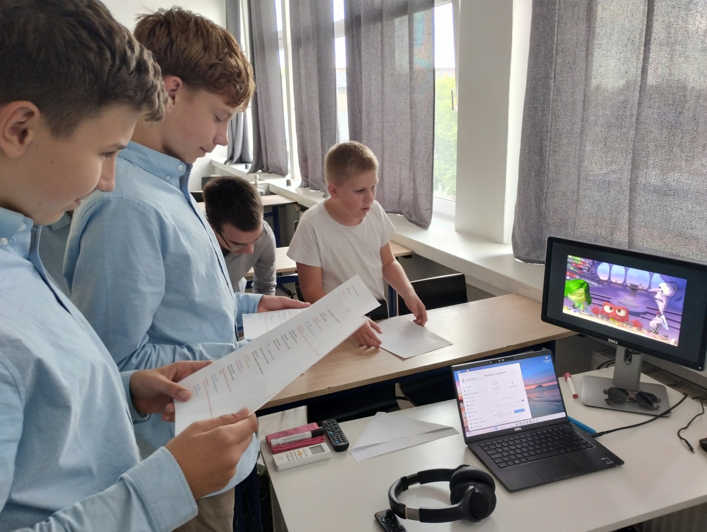 Pracując w 5-osobowych grupach wspólnie podkładali głosy do sceny kłótni z filmu "W głowie się nie mieści". Każda grupa wykonała zadanie dwa razy ze zmianą ról. Mimo początkowej niepewności wszyscy szybko się przełamali i zaczęli wcielać się w Strach, Gniew i Odrazę. I cytując końcowy tekst z tej sceny: "tupnęliśmy nogą? Tupnęliśmy nogą!", mogę śmiało powiedzieć, że zaczęliśmy z przytupem!