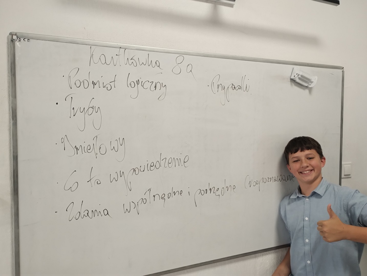Kolejnym krokiem było pytanie wybiórczo uczniów z tego, co wypisali (oraz z tego, o czym zapomnieli). Gdy trzy razy padło "nie wiem" lub ktoś podpowiadał, zapisywałem zagadnienie na tablicy. I tak w klasie 8 uzbieraliśmy 6 zagadnień do samodzielnej powtórki, z których zrobimy szybką kartkówkę.