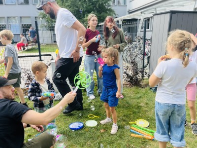 Na dzieci czekały: stoiska z gniotkami i bransoletkami, malowanie buziek, bańki mydlane,