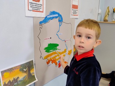Podczas wczorajszych zajęć z cyklu Polska – moja ojczyzna, grupa Jeżyków poznała legendę o Lechu, Czechu i Rusie.