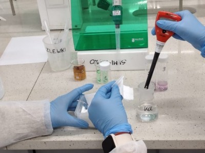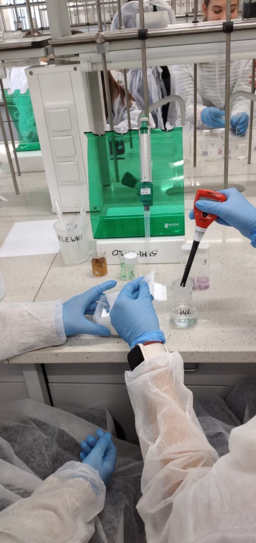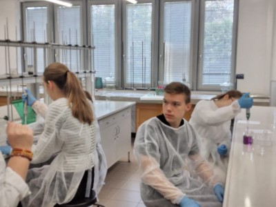 We wtorek uczniowie rozszerzający biologię z klasy 2 i 3 LO odwiedzili Wydział Farmacji Warszawskiego Uniwersytetu Medycznego. Byliśmy tam na warsztatach "...komu czerwień, komu fiolet... - czyli antocjany na zdrowie" w ramach Festiwalu Nauki. Poznaliśmy właściwości i znaczenie antocjanów, ale też sami je badaliśmy. Było miareczkowanie, praca z pH-metrem i różnymi roztworami. Było tak fajnie, że to chyba nie ostatnia nasza wizyta na Wydziale Farmacji.
