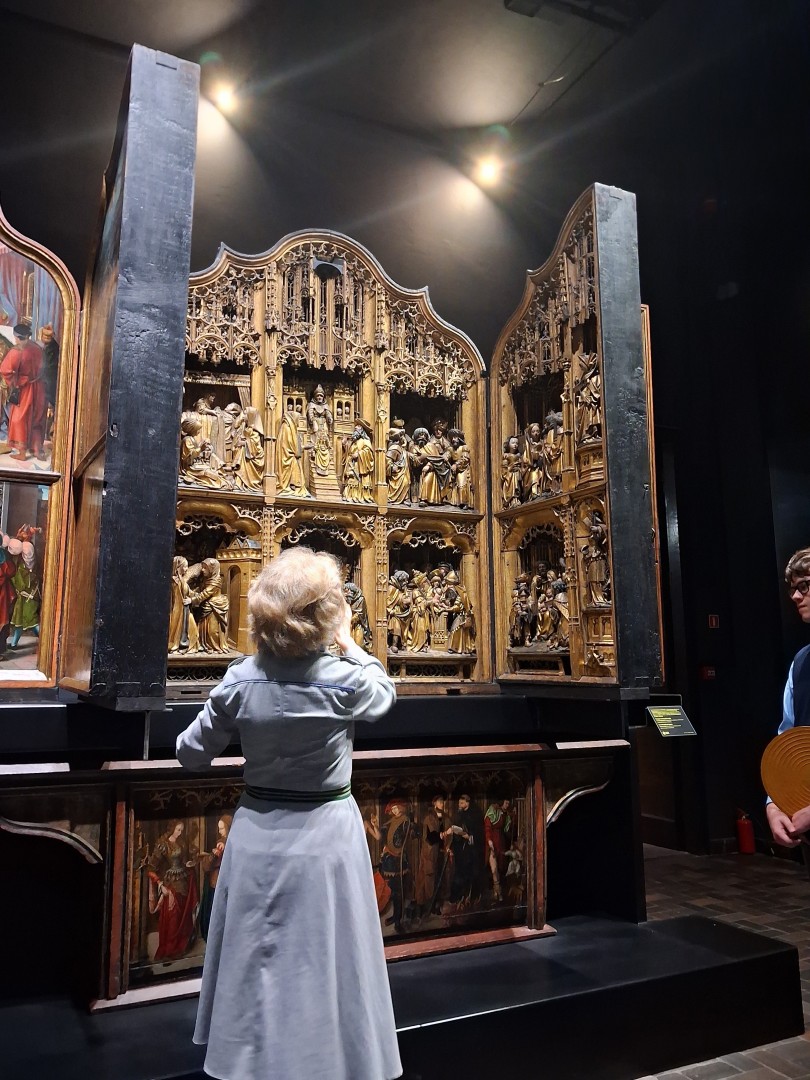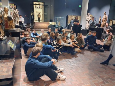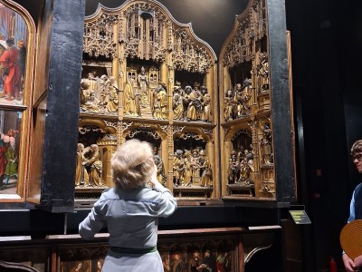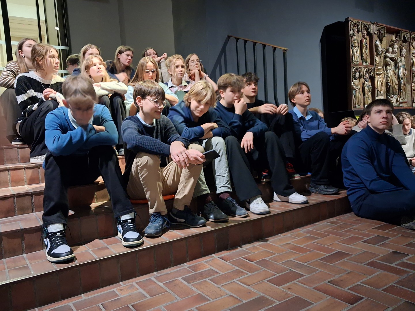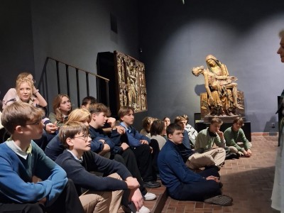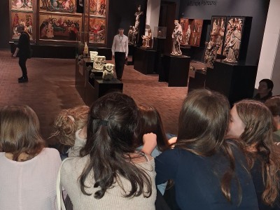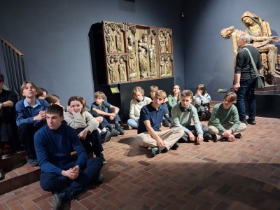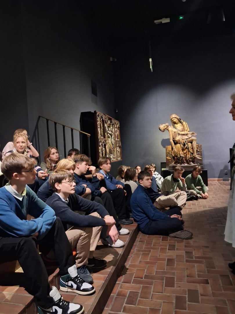 Spotkanie w galerii było okazją do rozmowy o trwającej blisko tysiąc lat epoce średniowiecza. Uczniowie obejrzeli nastawy ołtarzowe, rzeźby polichromowane, malarskie cykle narracyjne i przykłady rzemiosła artystycznego.