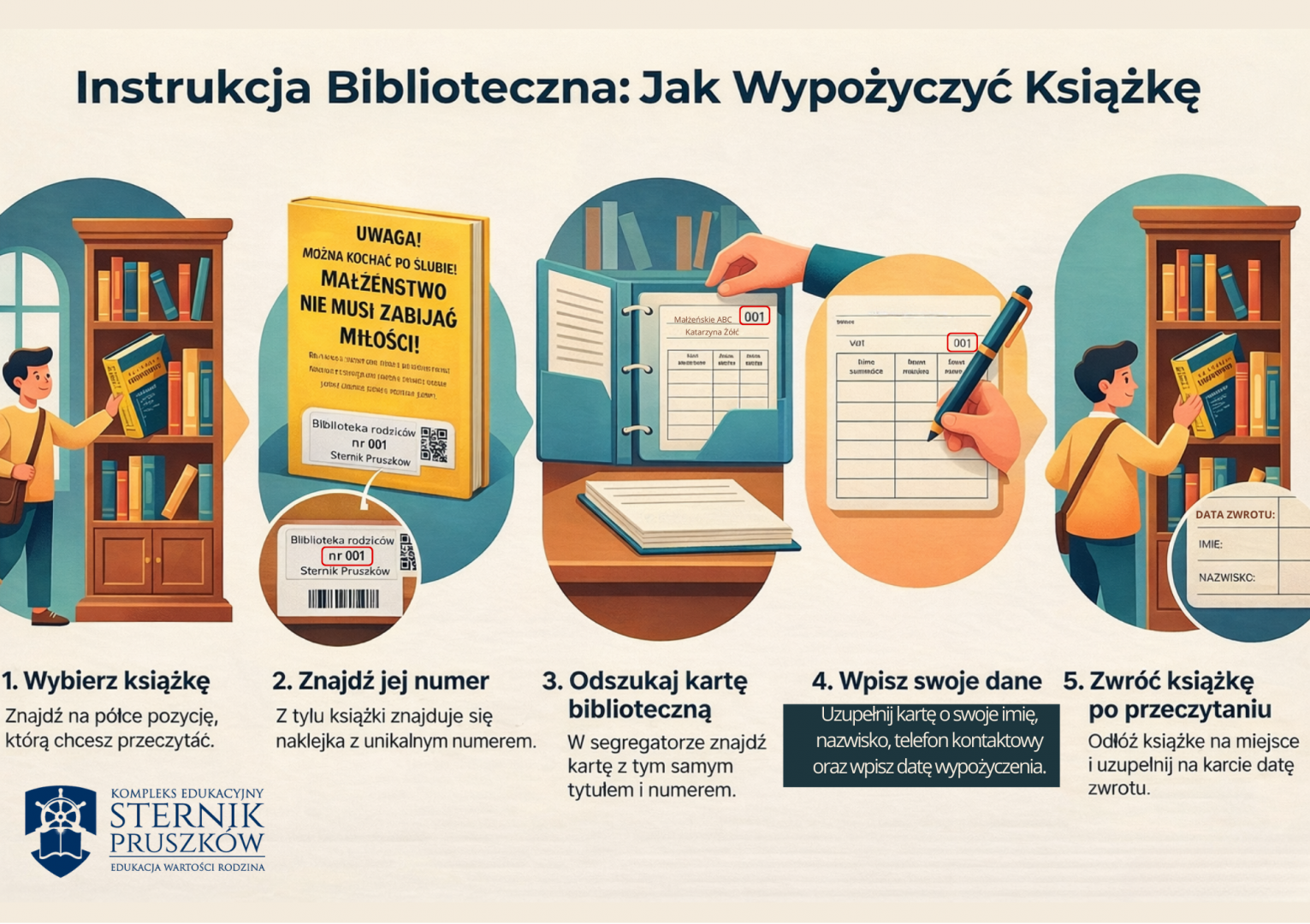 To miejsce z dobrymi książkami, po które można sięgnąć przy okazji codziennych szkolnych spraw – spontanicznie, bez nadmiernych formalności.