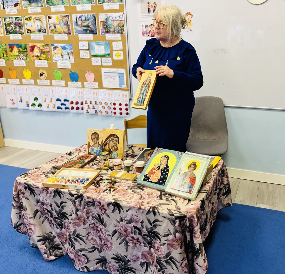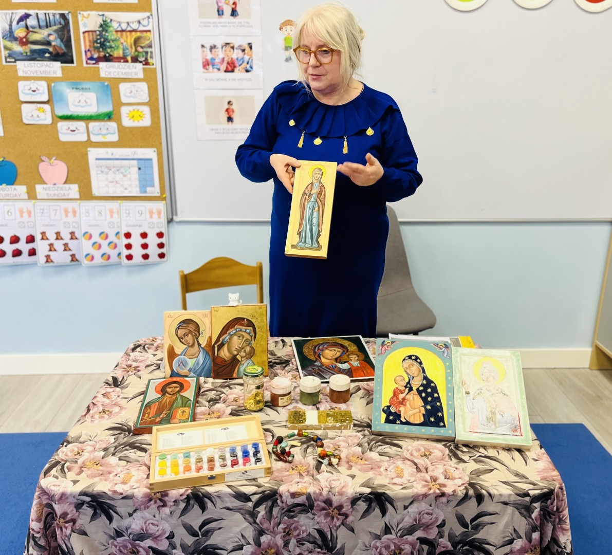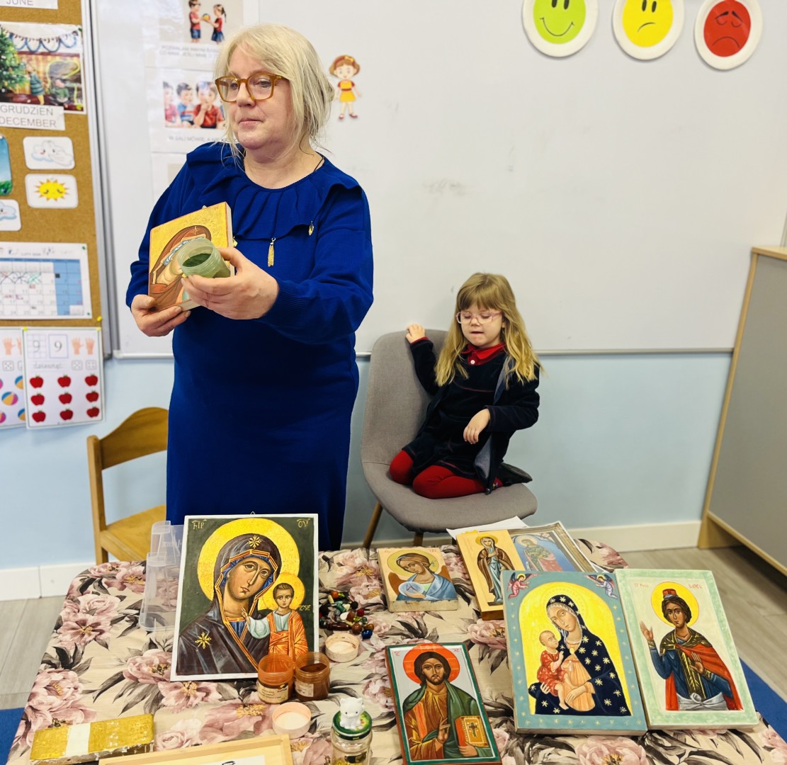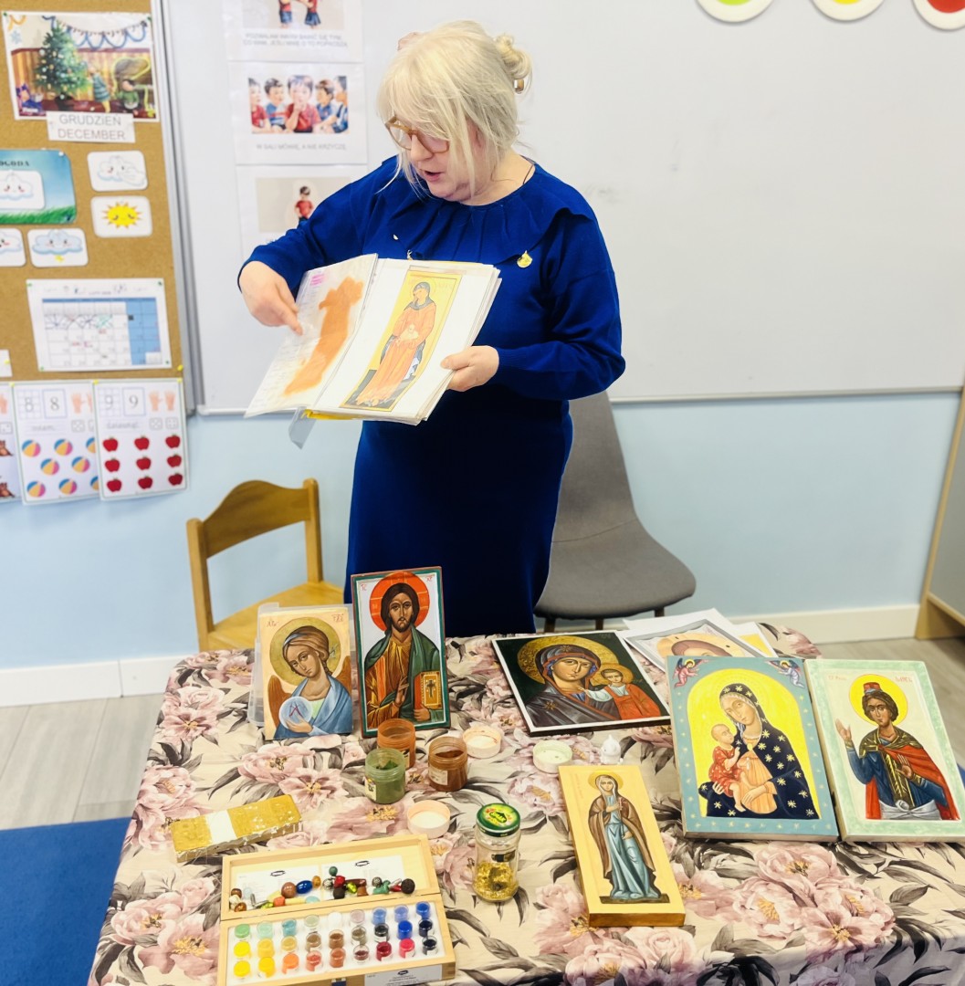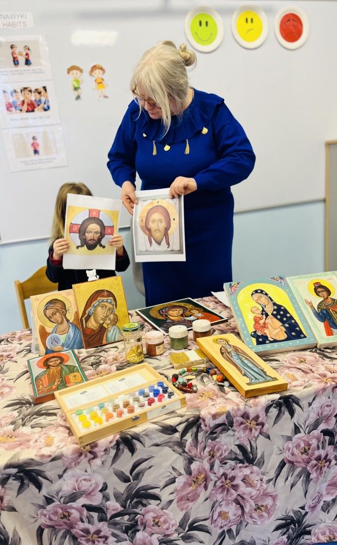 Podzieliła się również ciekawostkami związanymi z tradycją ikonopisania, wprowadzając dzieci w świat piękna, symboliki i historii.