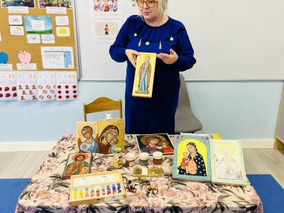 Przybliżyła, na czym polega tworzenie ikon, skąd wywodzi się ta wyjątkowa sztuka oraz jakie znaczenie mają kolory, symbole i postacie.