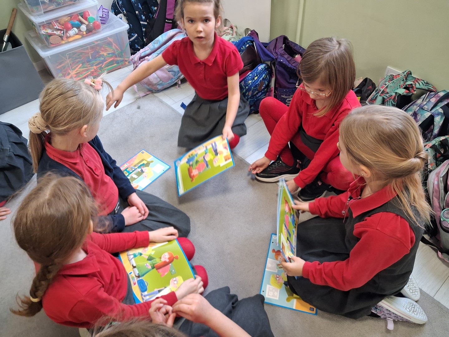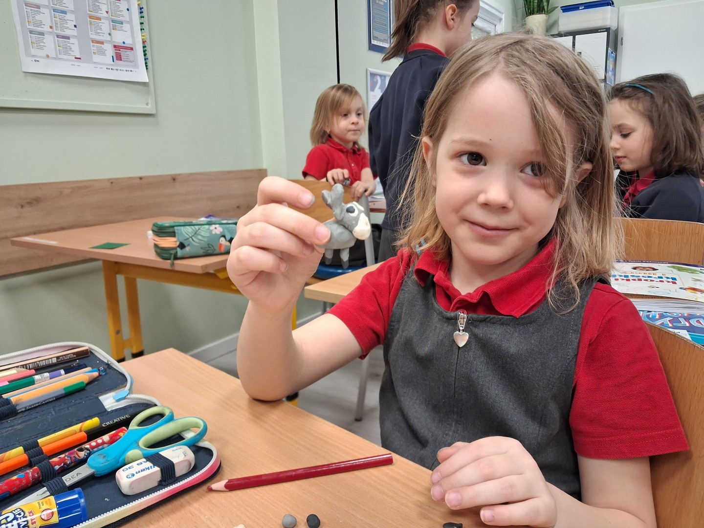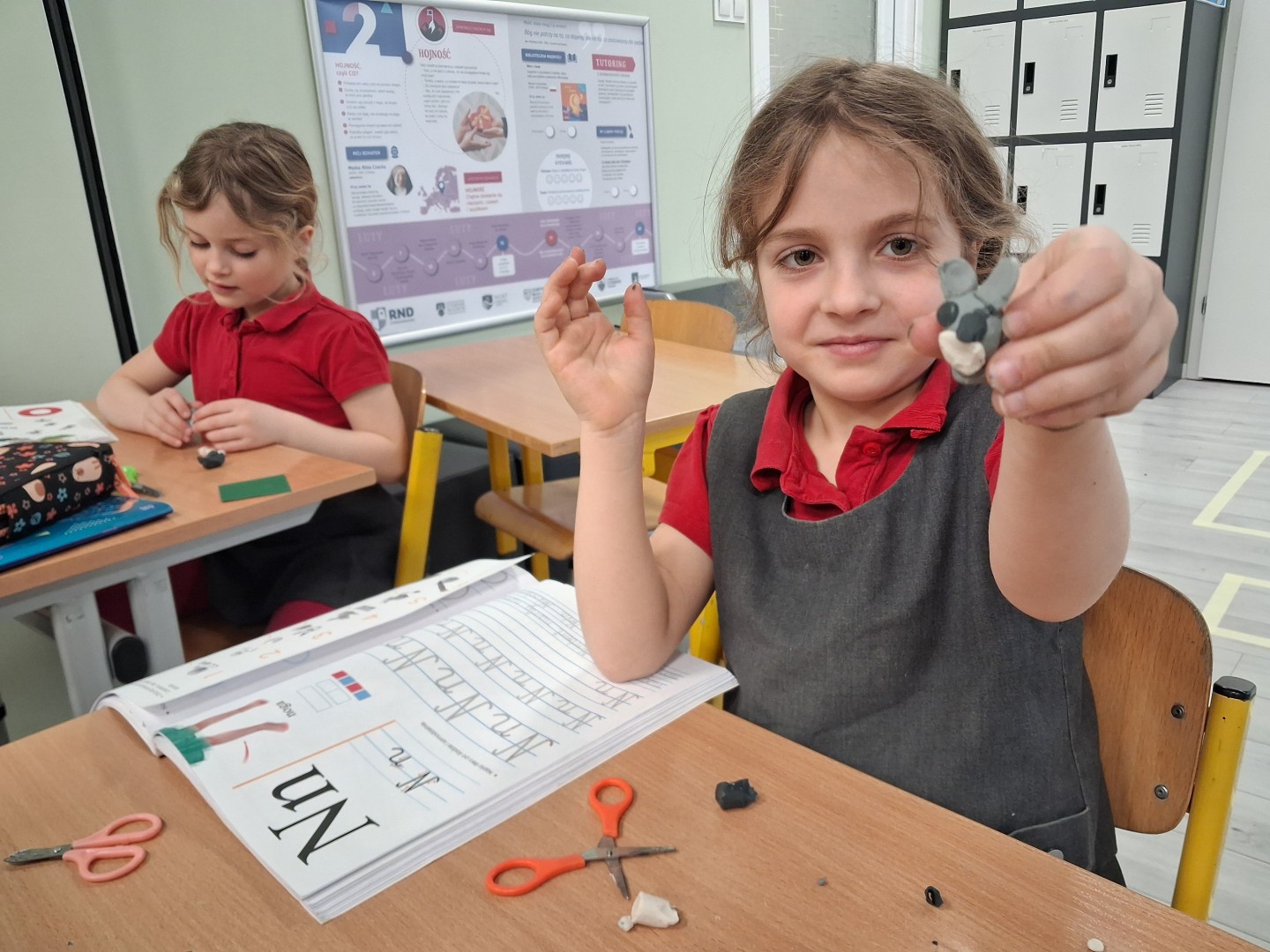 Dzieci rozpoznawały emocje oraz układały historie obrazkowe. W zakresie motoryki małej lepiły z plasteliny, rozwijając sprawność dłoni i wyobraźnię. Dziewczynki współpracowały, wykazywały się kreatywnością oraz uczyły się uważnego słuchania i wyrażania własnych przeżyć.