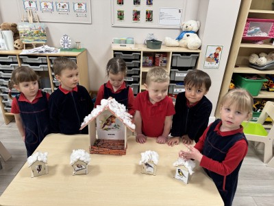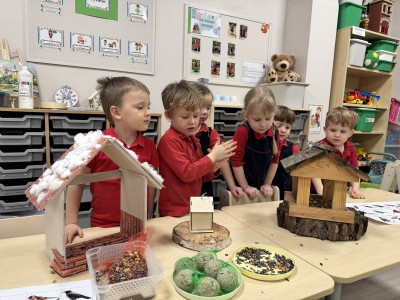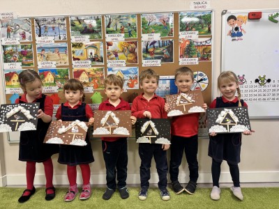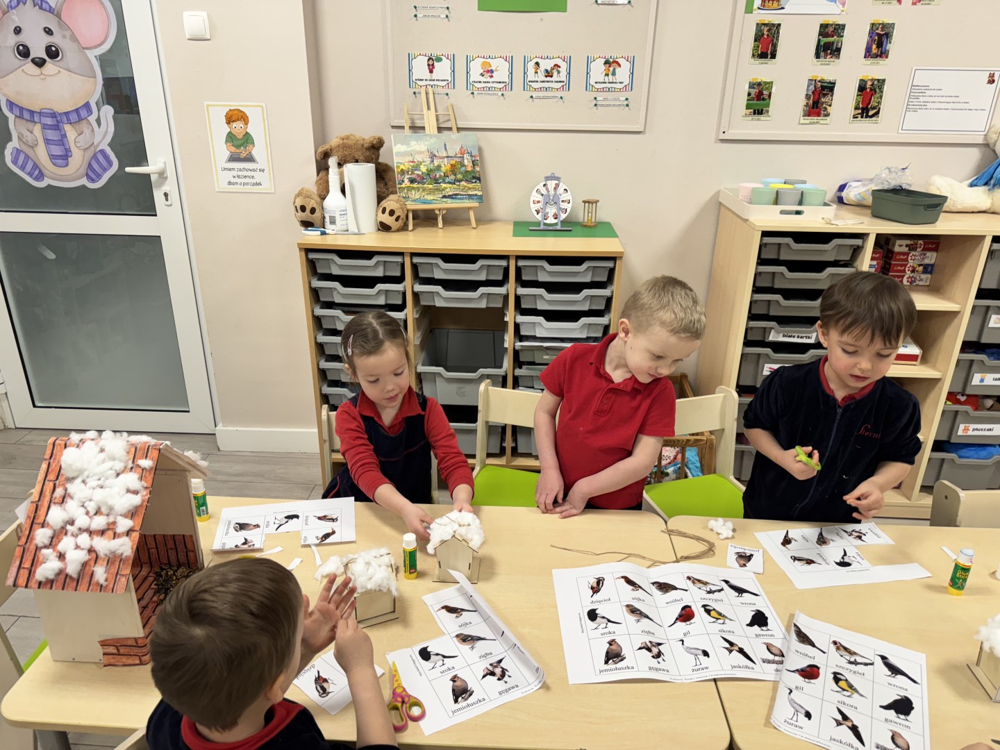 Podczas zajęć dzieci poznały ptaki, które nie odlatują na zimę, m.in. wróbla, sikorkę i kosa. Rozmawialiśmy o tym, dlaczego zima jest trudnym okresem dla ptaków, jakie mają problemy ze zdobyciem pożywienia oraz w jaki sposób możemy im pomagać.