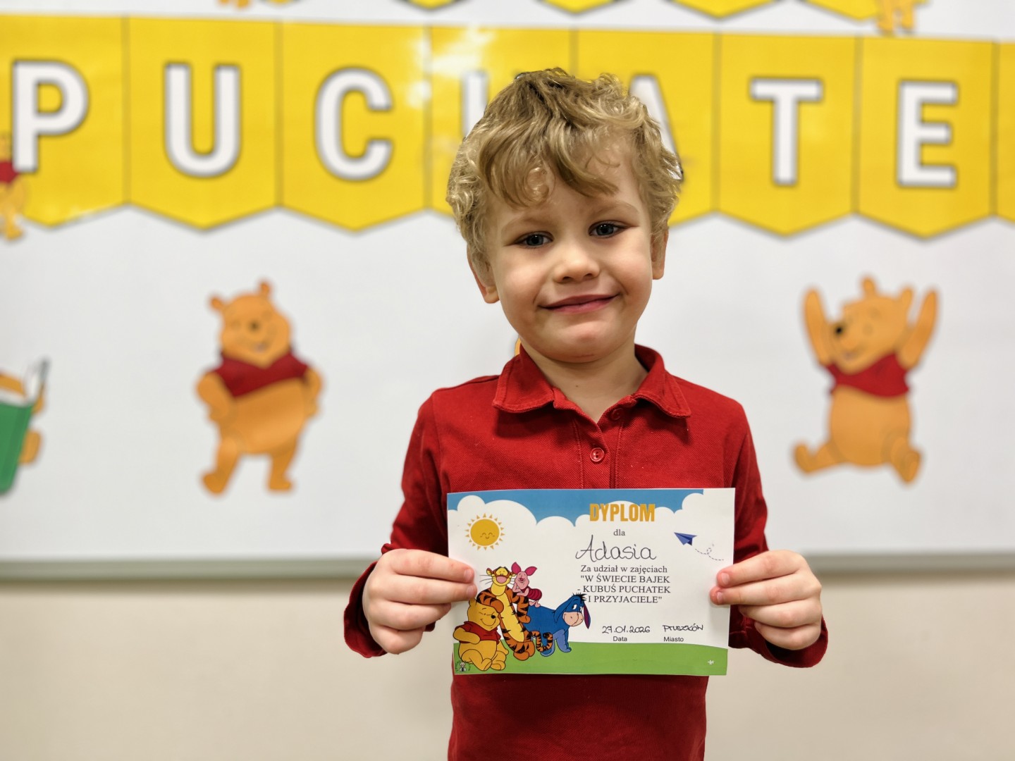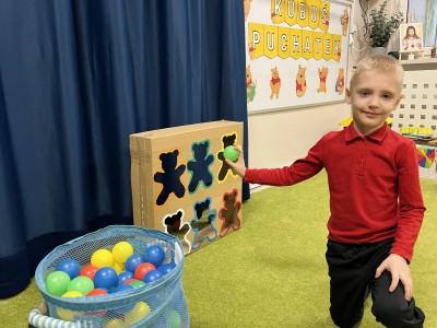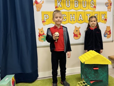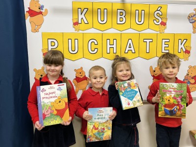 W czasie ferii zimowych przedszkolaki przeniosły się w świat bajek. Jedne z zajęć poświęcone były postaci Kubusia Puchatka.