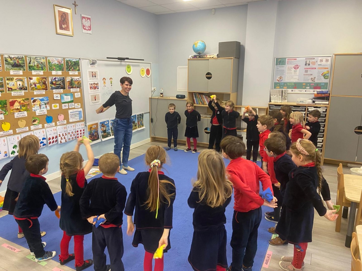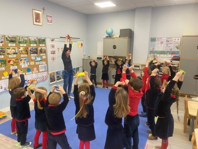 Ćwiczenia łączą ruch, muzykę i zabawę, co wspiera:
