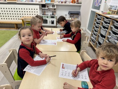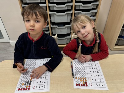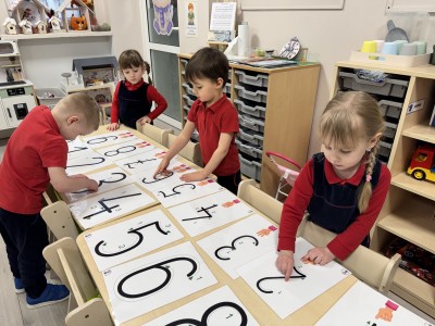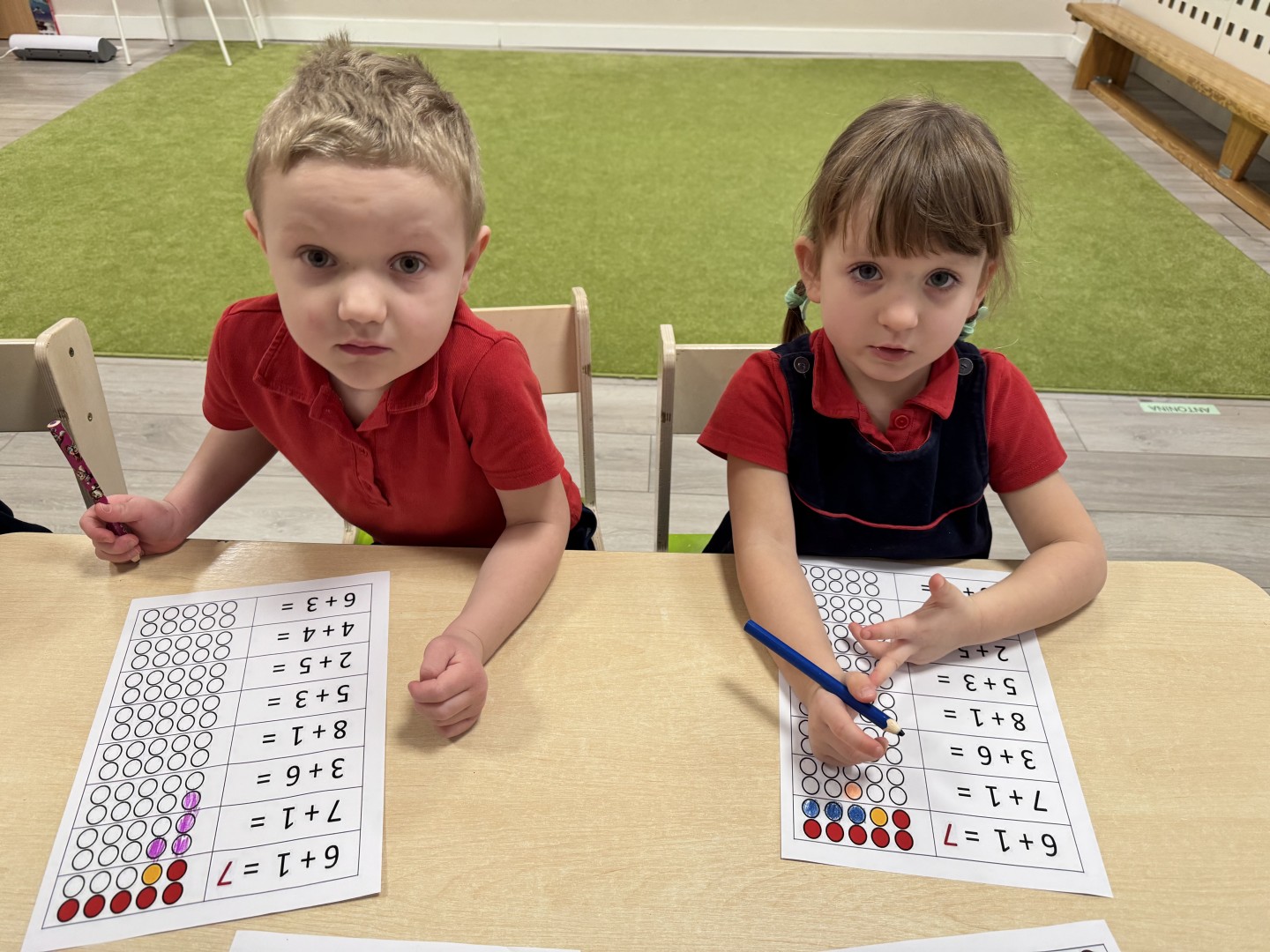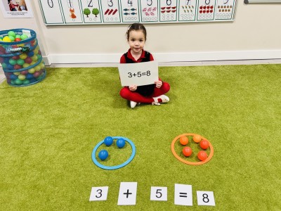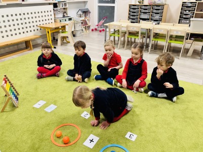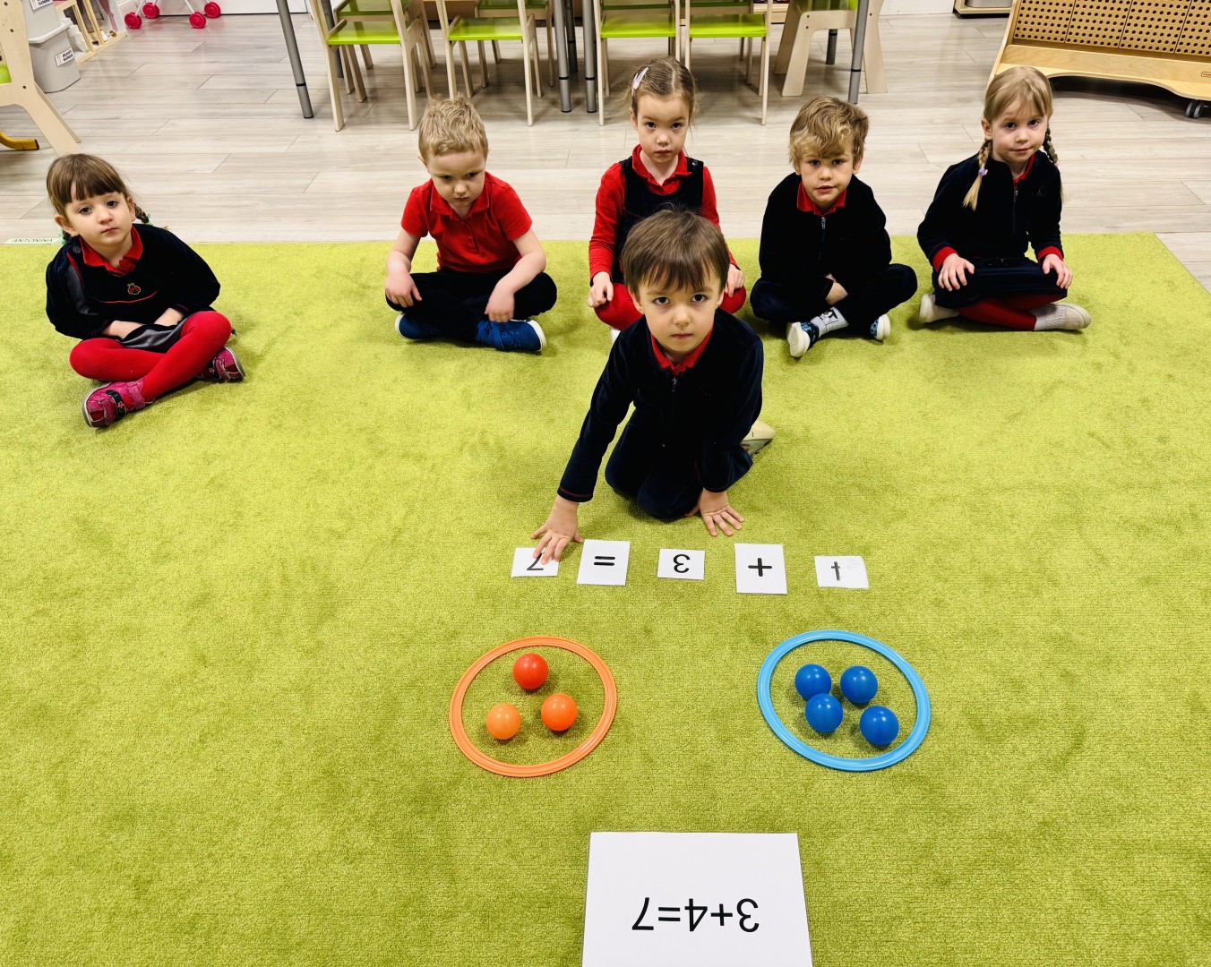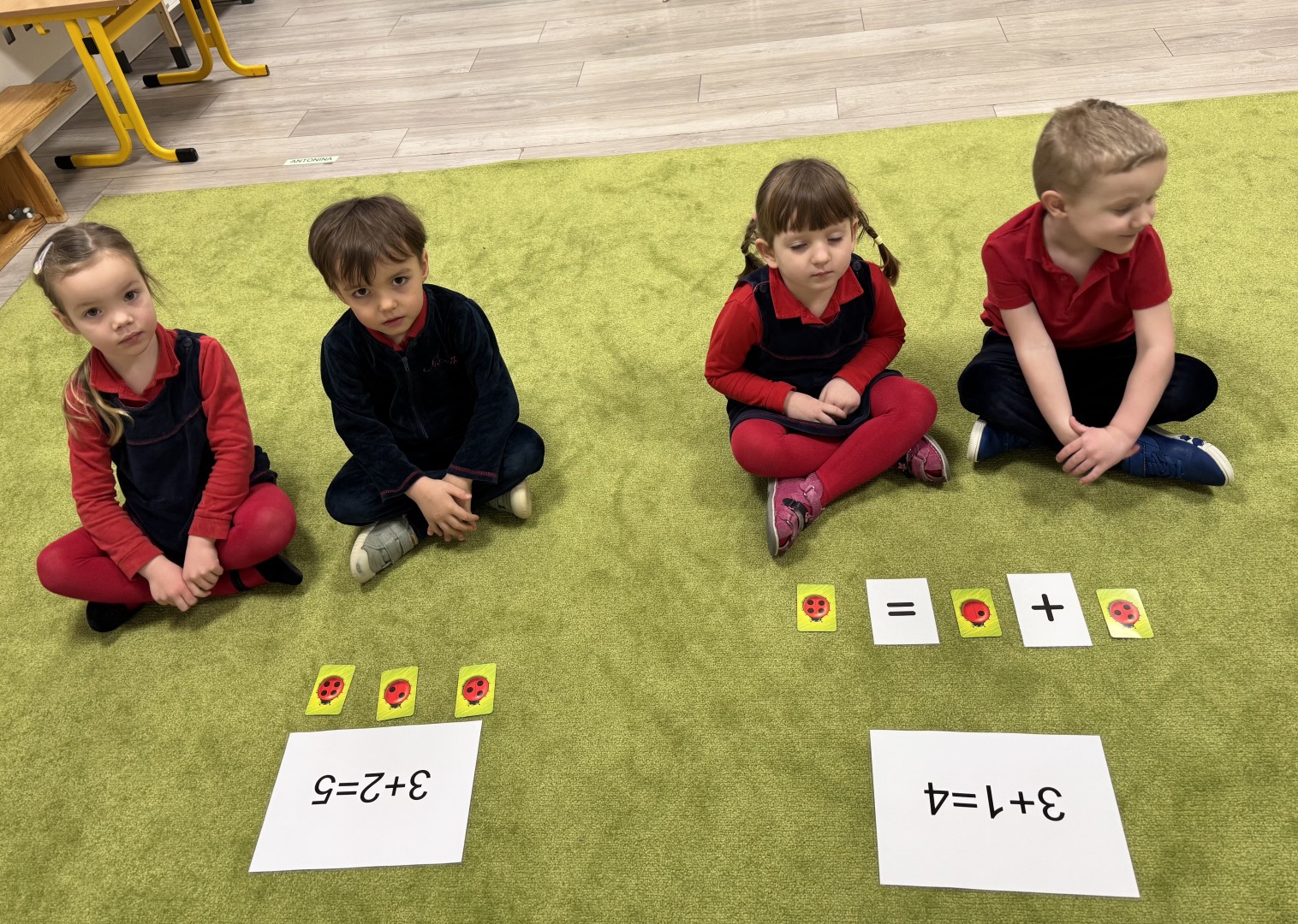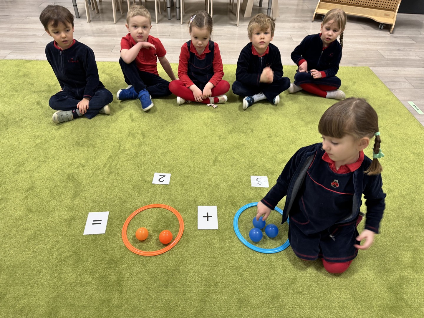 W trakcie zajęć dzieci utrwalały znajomość cyfr oraz poznawały znaczenie znaku dodawania. Ćwiczenia obejmowały wykonywanie działań z dominującą cyfrą 3, do której dzieci dodawały 1, 2 lub 3 — w zakresie liczbowym do 10.