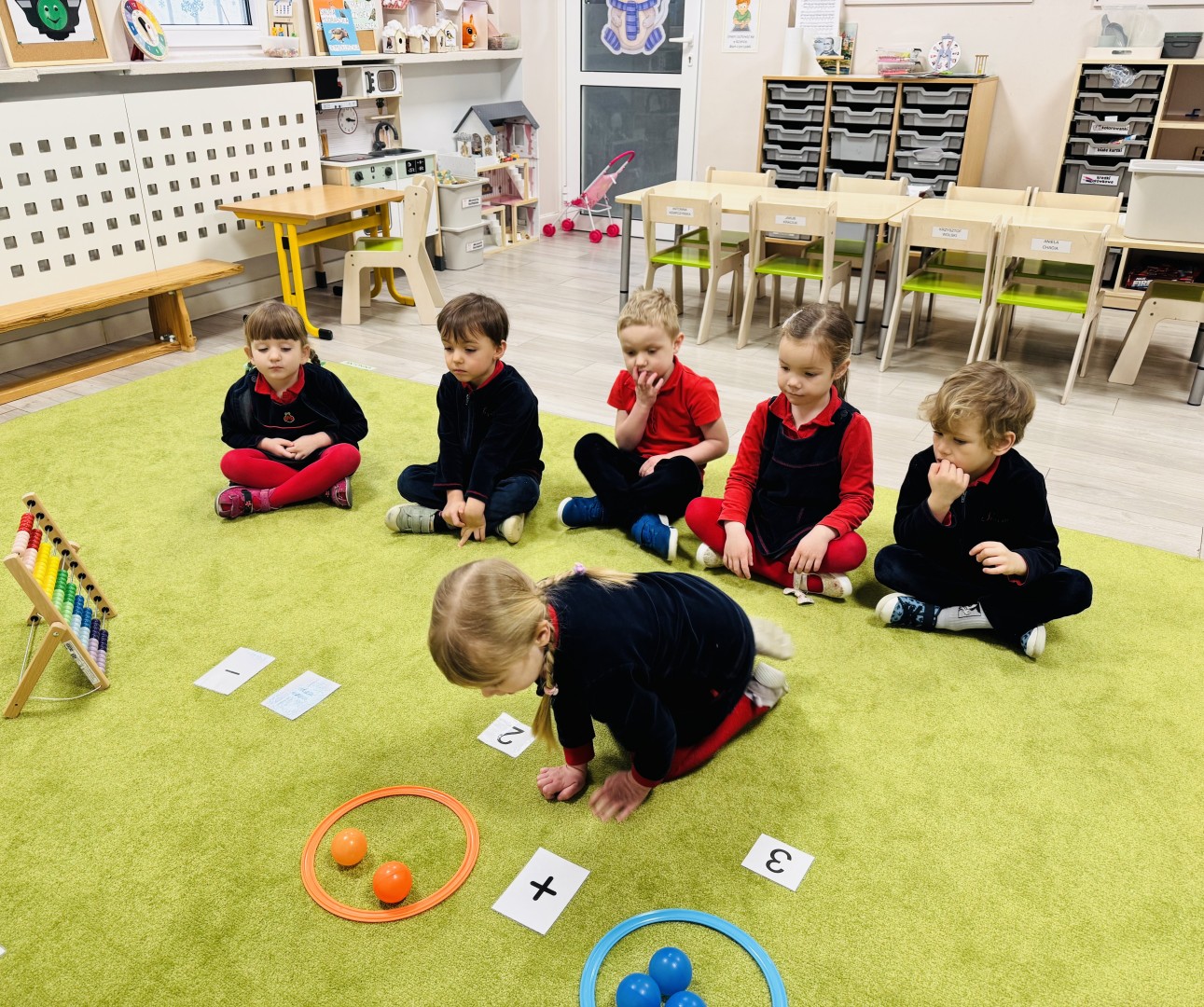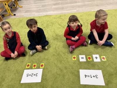 W grupie „Wiewiórek” realizowano cykl zajęć z edukacji matematycznej oparty na Metodzie Edyty Gruszczyk-Kolczyńskiej. Działania ukierunkowane były na rozwijanie dojrzałości operacyjnej dzieci oraz ich gotowości do uczenia się matematyki poprzez aktywność własną i pracę na konkretach.